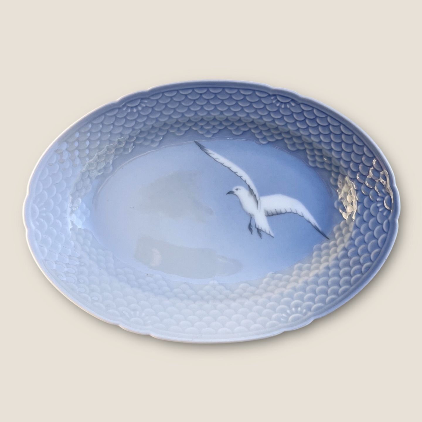 Bing & Grøndahl, Måge uden guld, Serveringsfad #18, 25,5cm bred, 18cm dyb, Design Fanny Garde *Pæn stand*