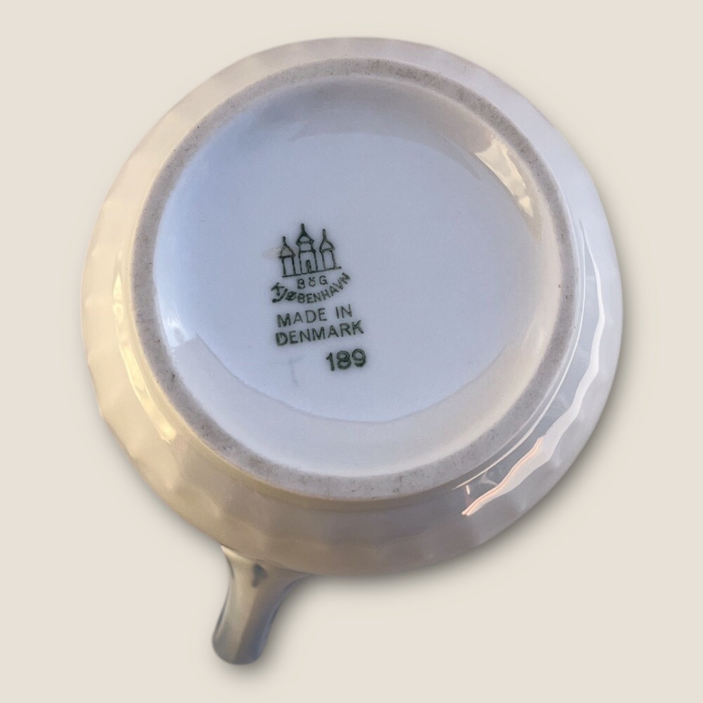 | Bing & Grøndahl, Måge uden guld, flødekande #189, 11,5cm høj, 11cm bred, 2. sortering, Design Fanny Garde *Pæn stand*