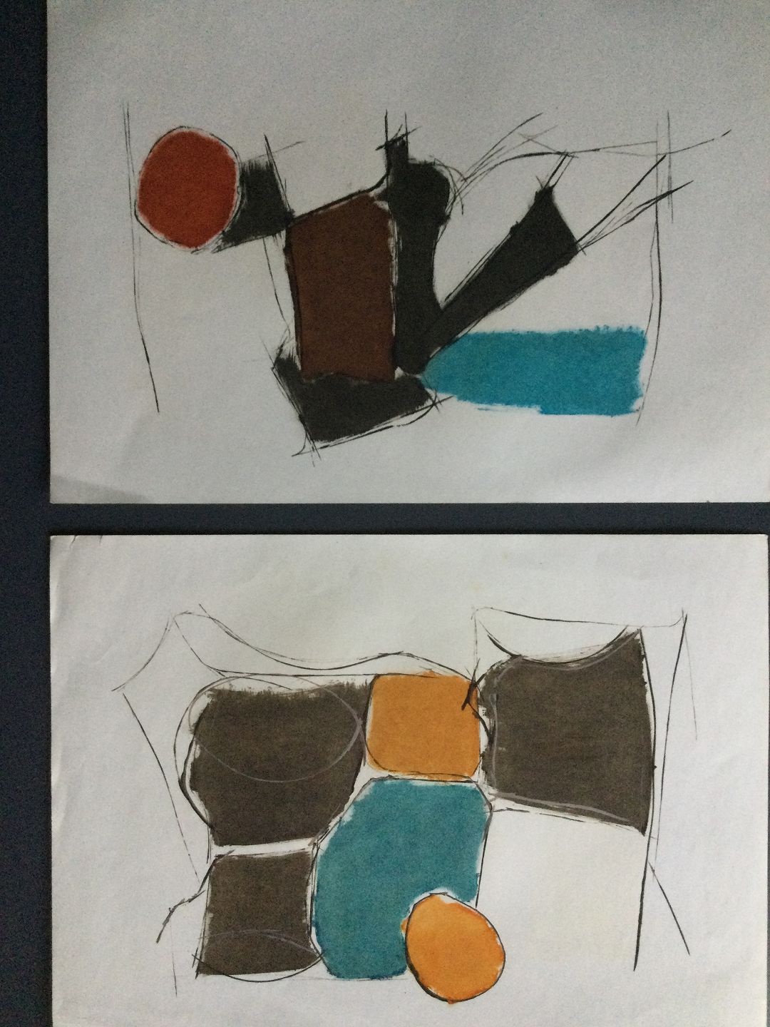 Litografier med efterbehandling af akvarel og farvekridt på papir.