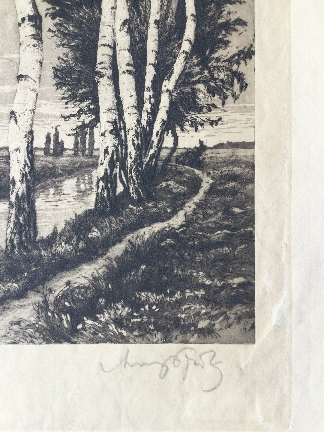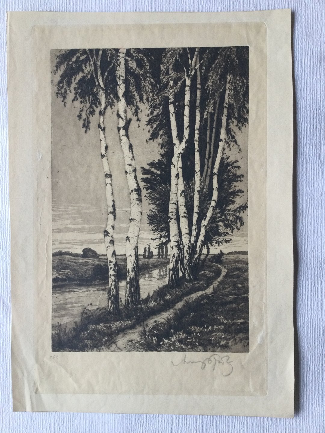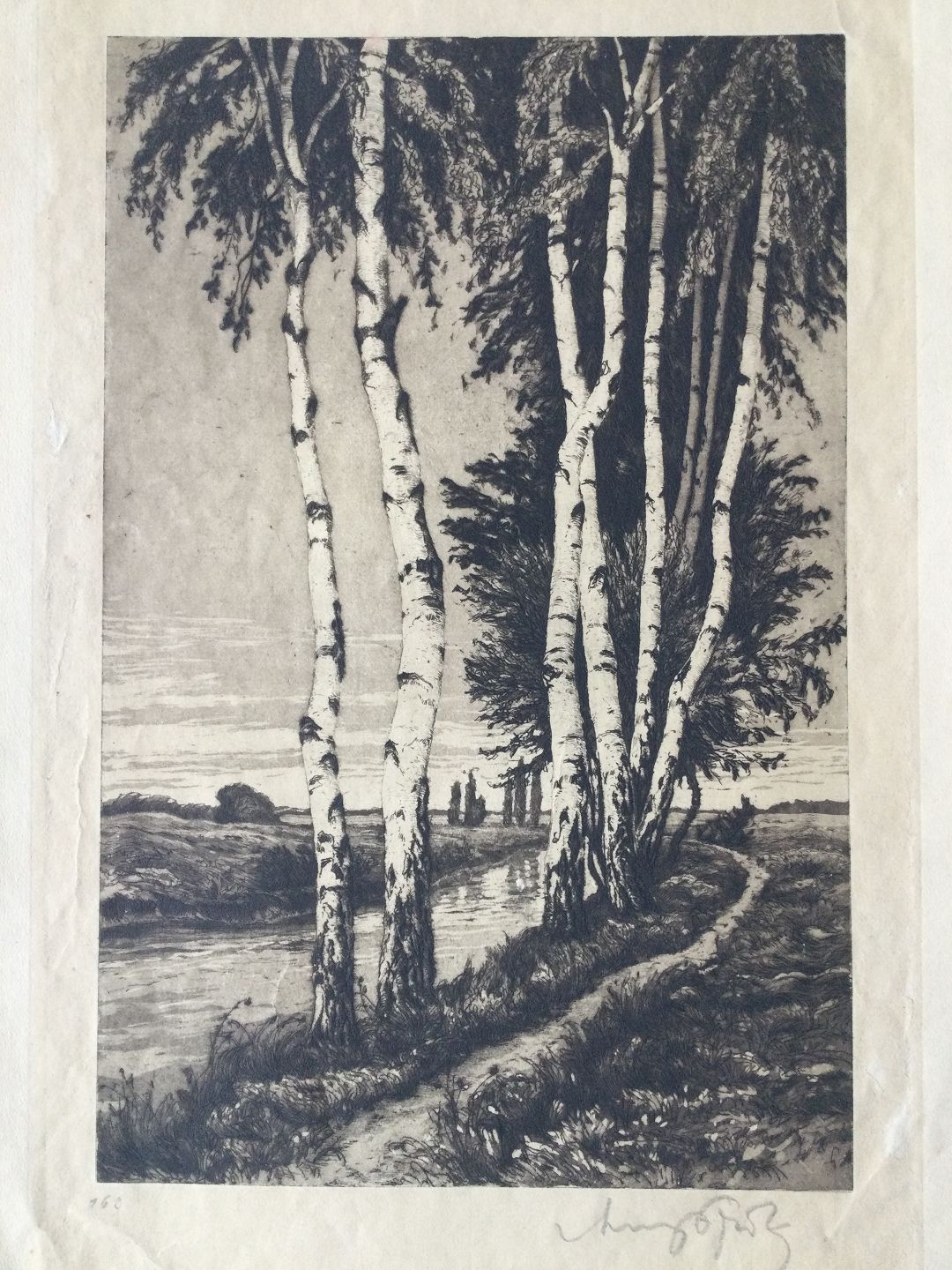 Radering af Georg Fritz - Birketræer ved å.