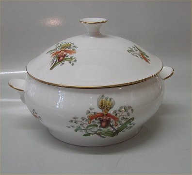 Bing & Grøndahl Fruersko Stel dekoreret med orkideer på hvidt glat porcelæn Kontakt os venligst for beholdning og priser Orkidé