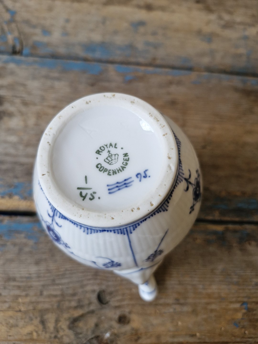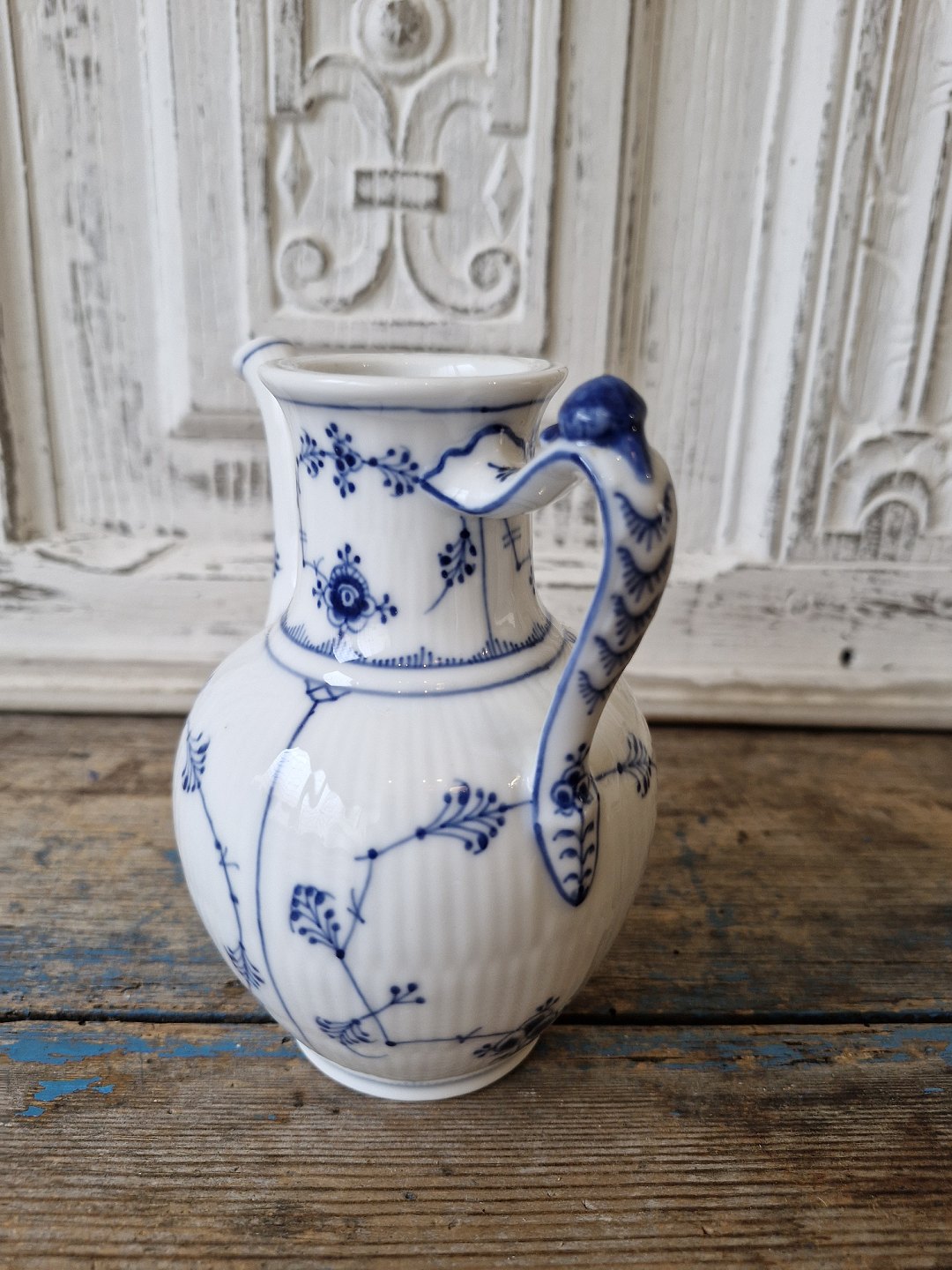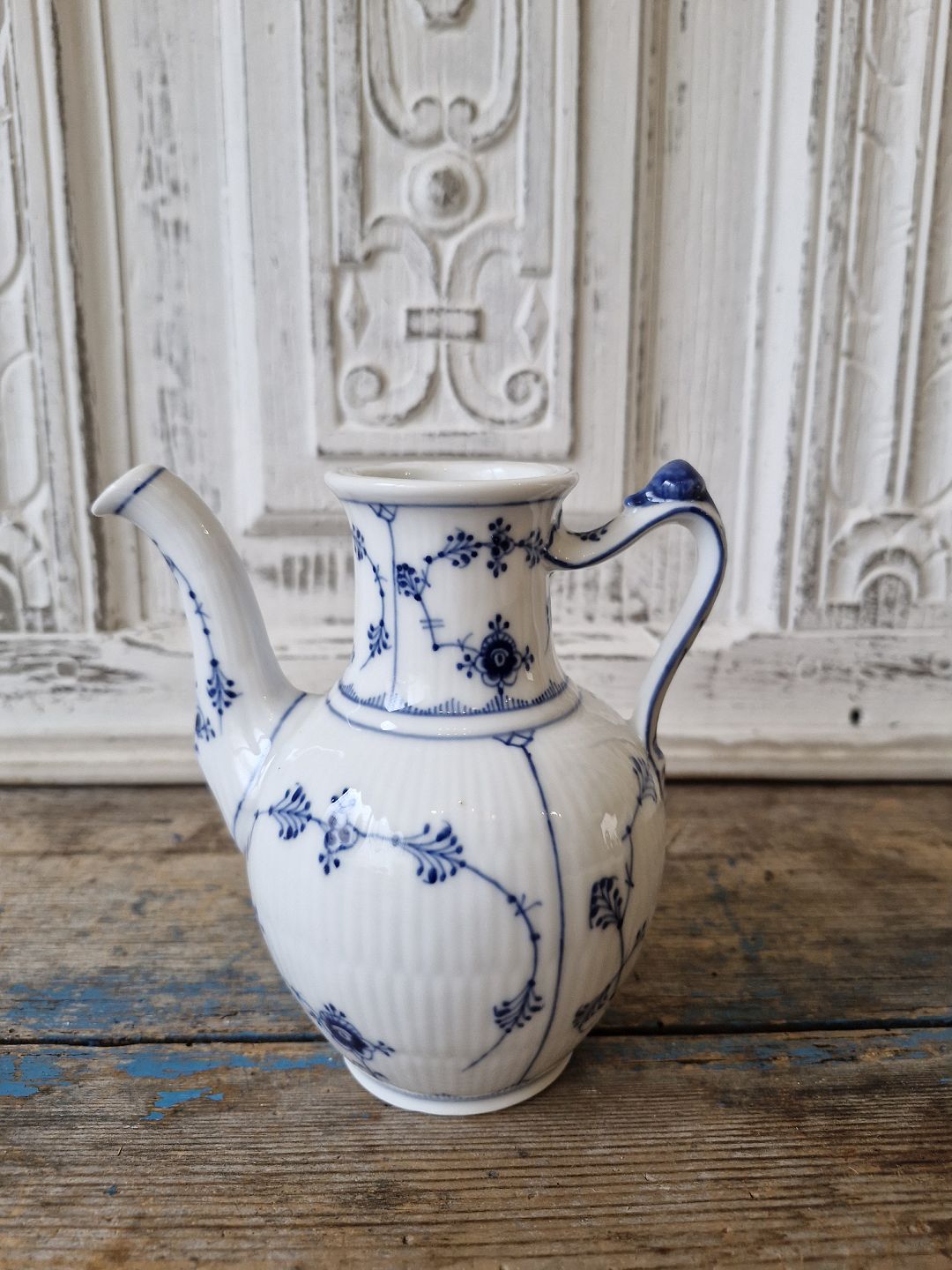 Royal Copenhagen Musselmalet riflet sjælden lille kaffekande no. 45