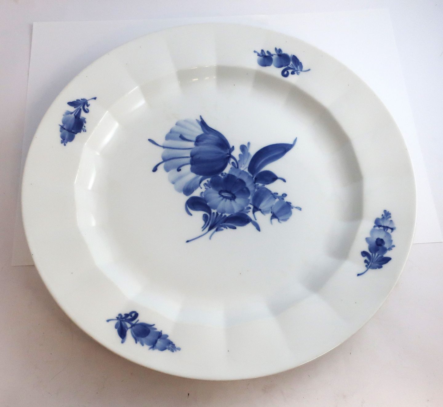 Royal Copenhagen. Blå blomst, kantet. Stort rundt fad. Model 8544. Diameter 37 cm. (3 sortering)