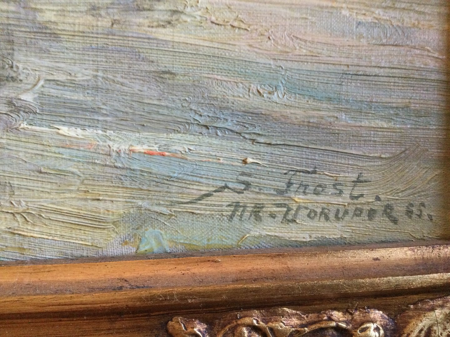 Maleri af Sergius Frost - Der trækkes vod på stranden efter makrel, Nr. Vorupør 4. august 1955.