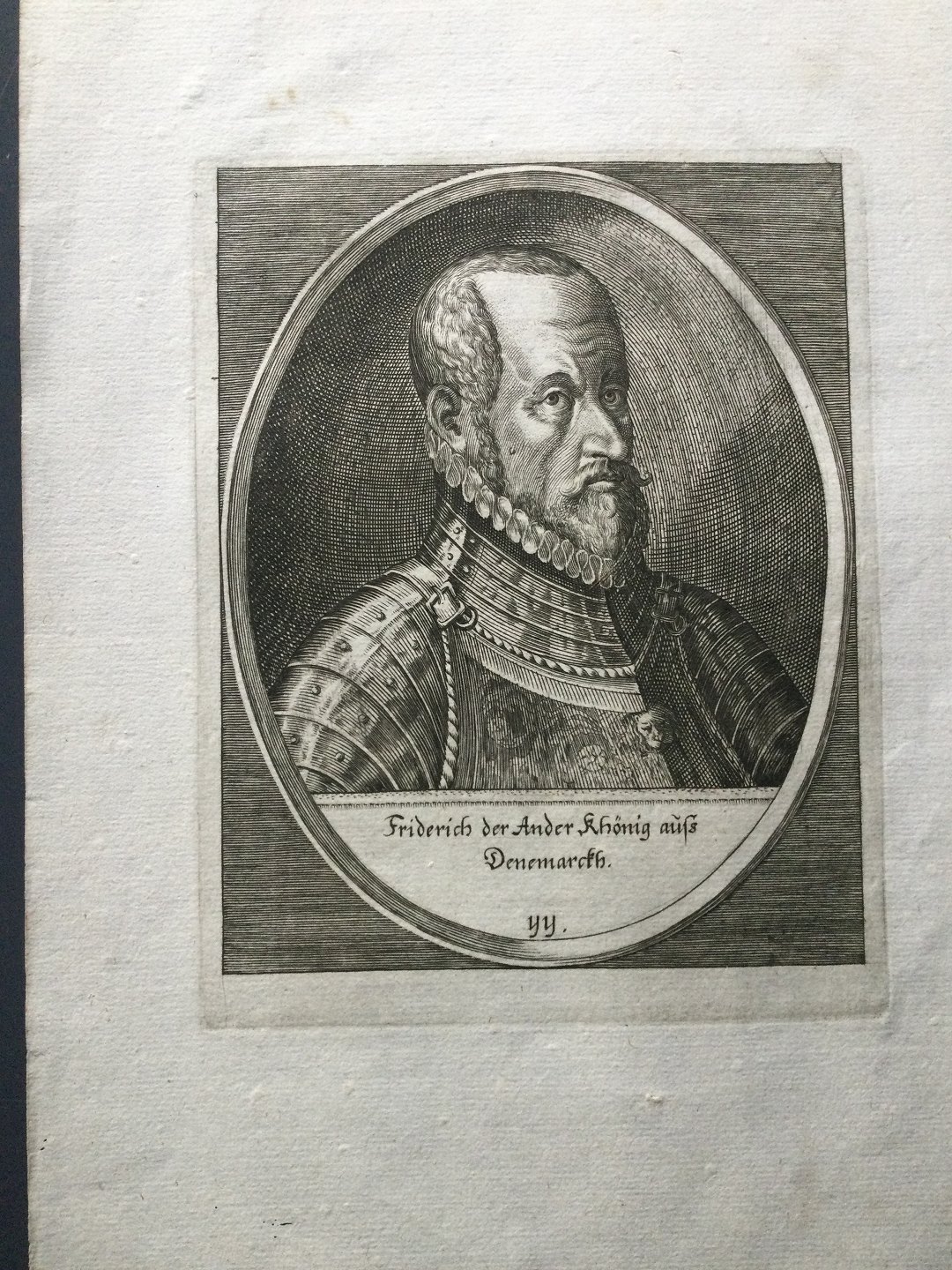 Kobberstik - Portræt af HM Kong Frederik II af Danmark og Norge.