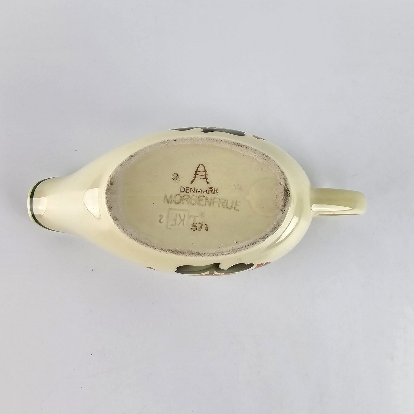 Smørnæb i fajance fra stellet Morgenfrue. Nr 571.