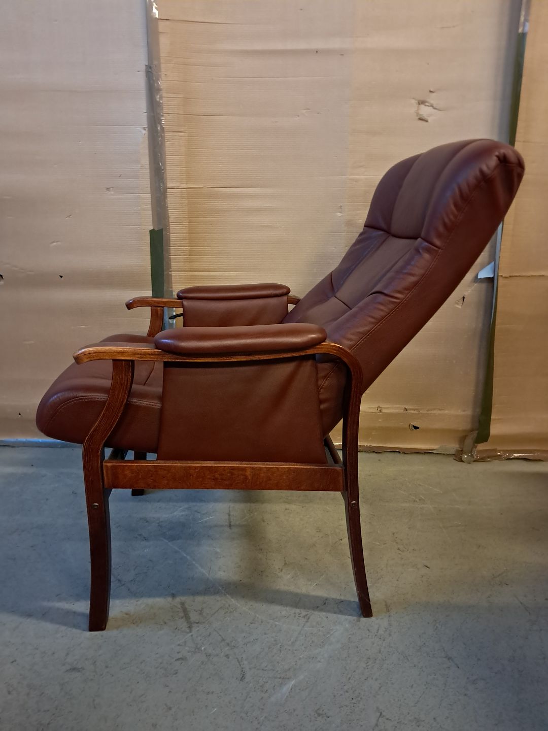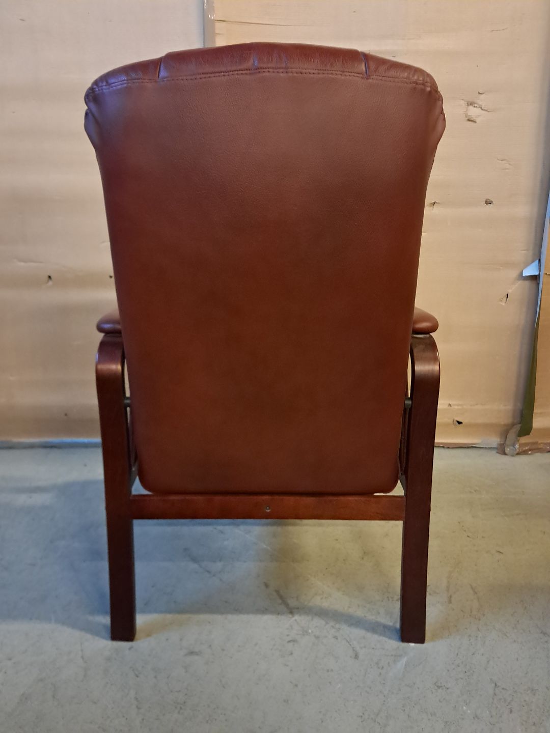 Lænestol i bøgetræ og kunstlæder, fra 1990erne.
