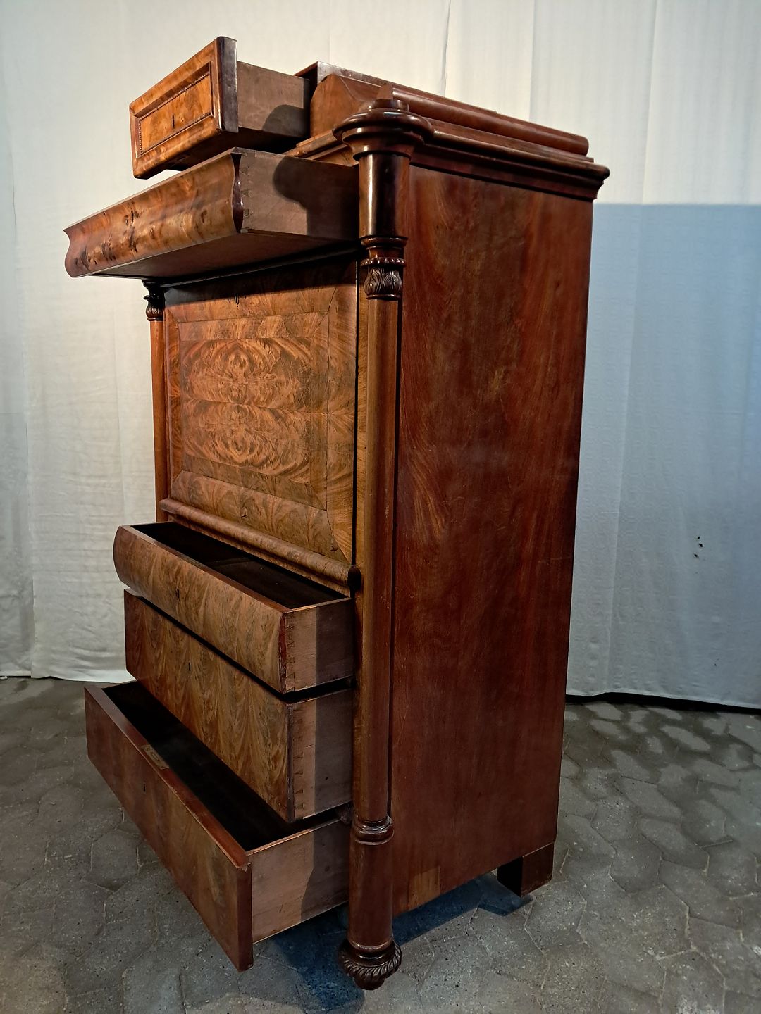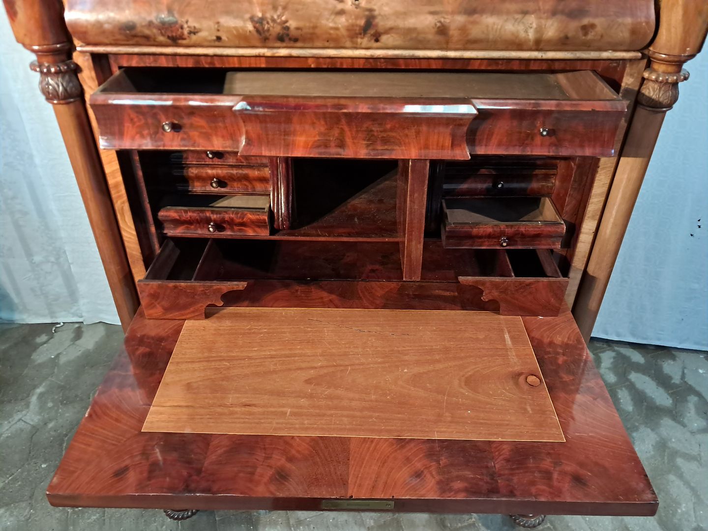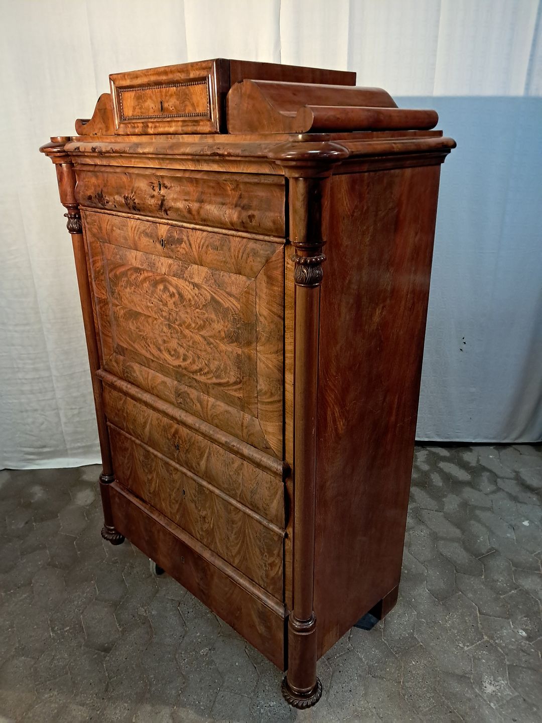 Sekretær i fineret mahogni, fra 1890erne.
