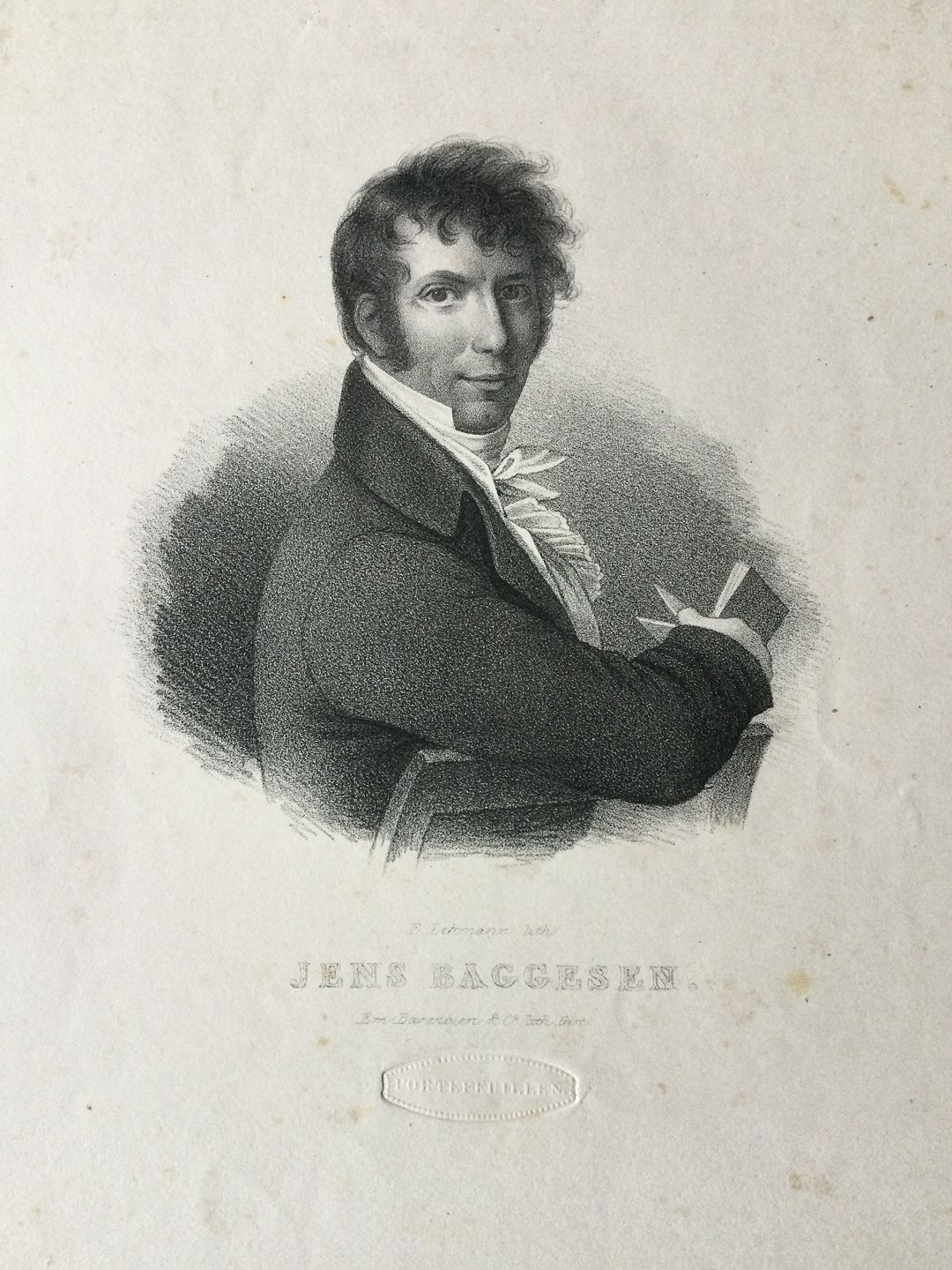 Litografi af Edvard Lehmann - Portræt af Digteren Jens Baggesen.