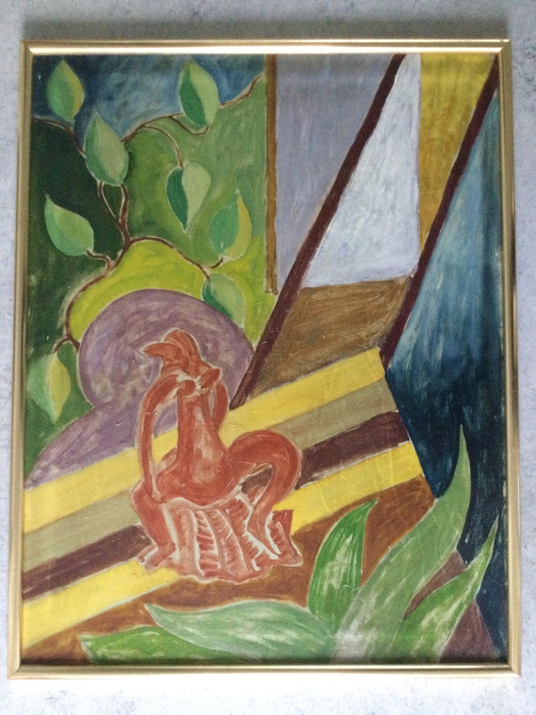 Maleri af Henry Sehested Bloch 1949 - Opstilling i vindue.