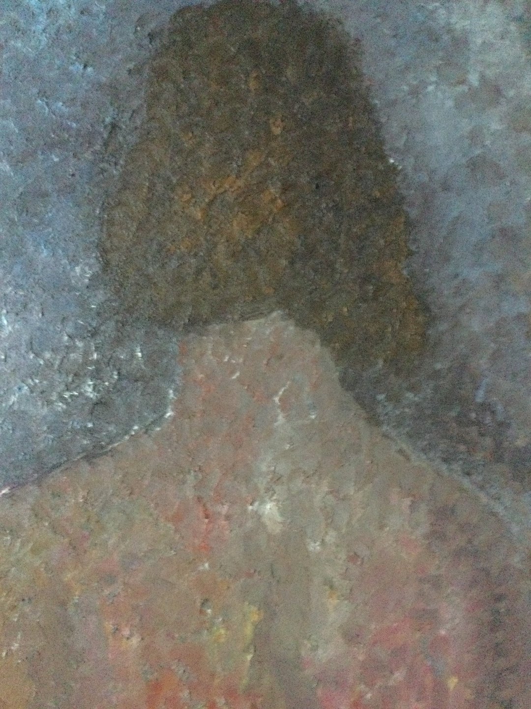 Komposition med kvinde set fra nakken.