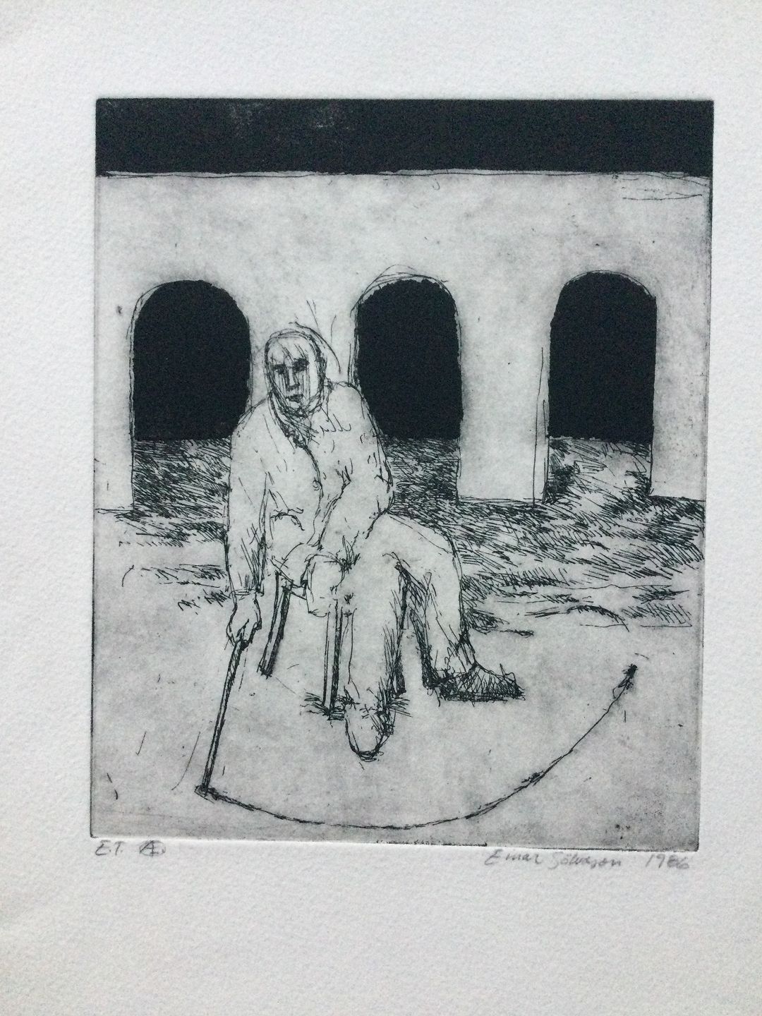 Ætsning af Einar Sölvason - Siddende mand 1986.