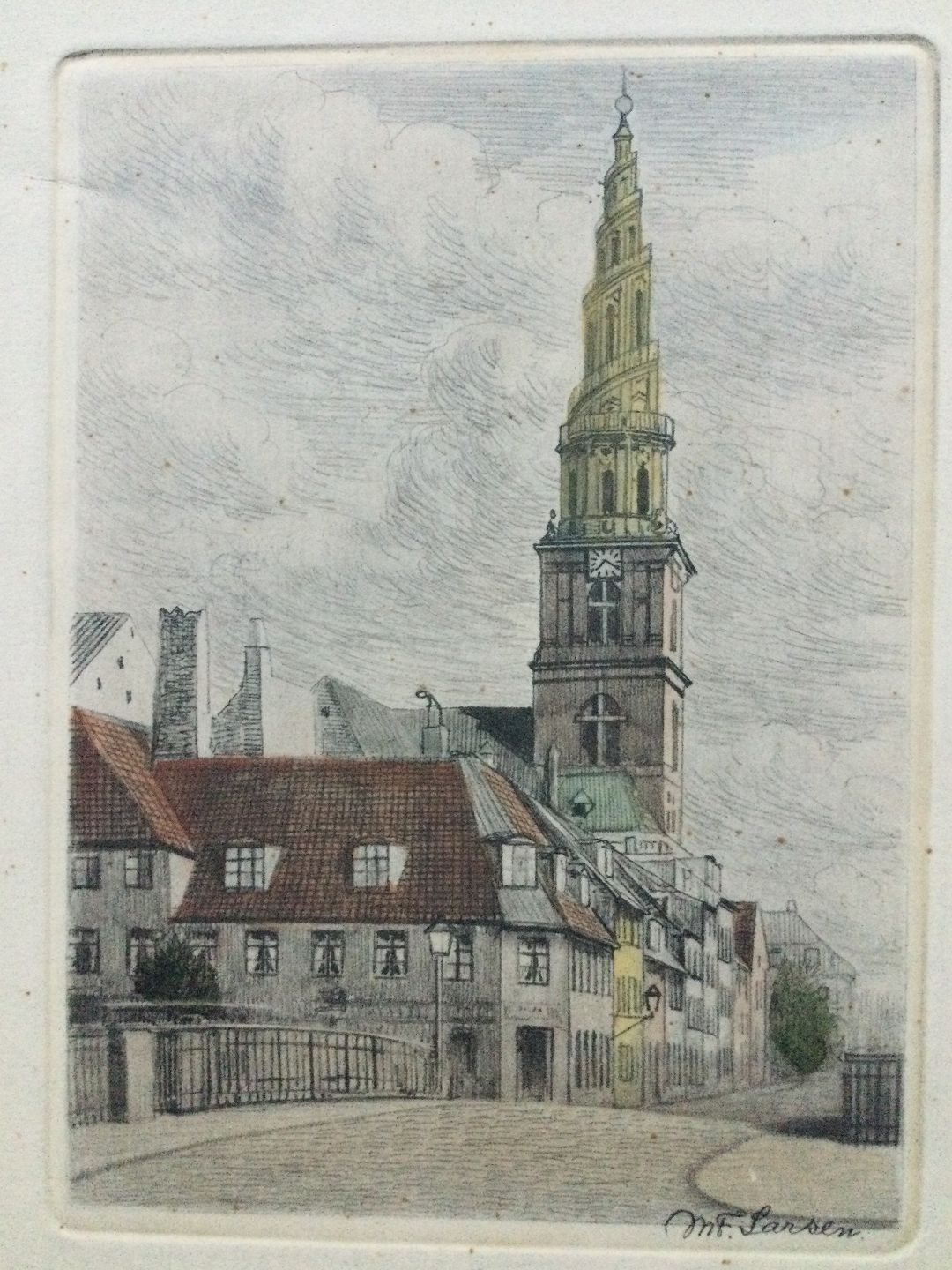 Radering af Martin F. Larsen - Vor frelse Kirke, Christianshavn, København.