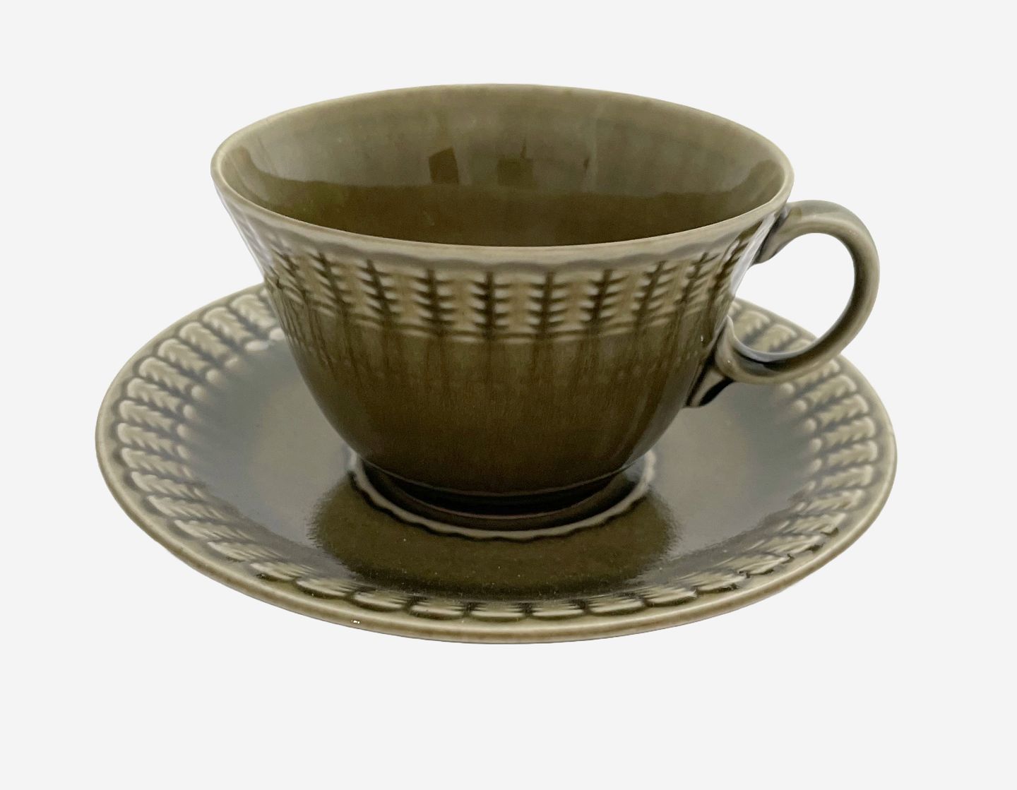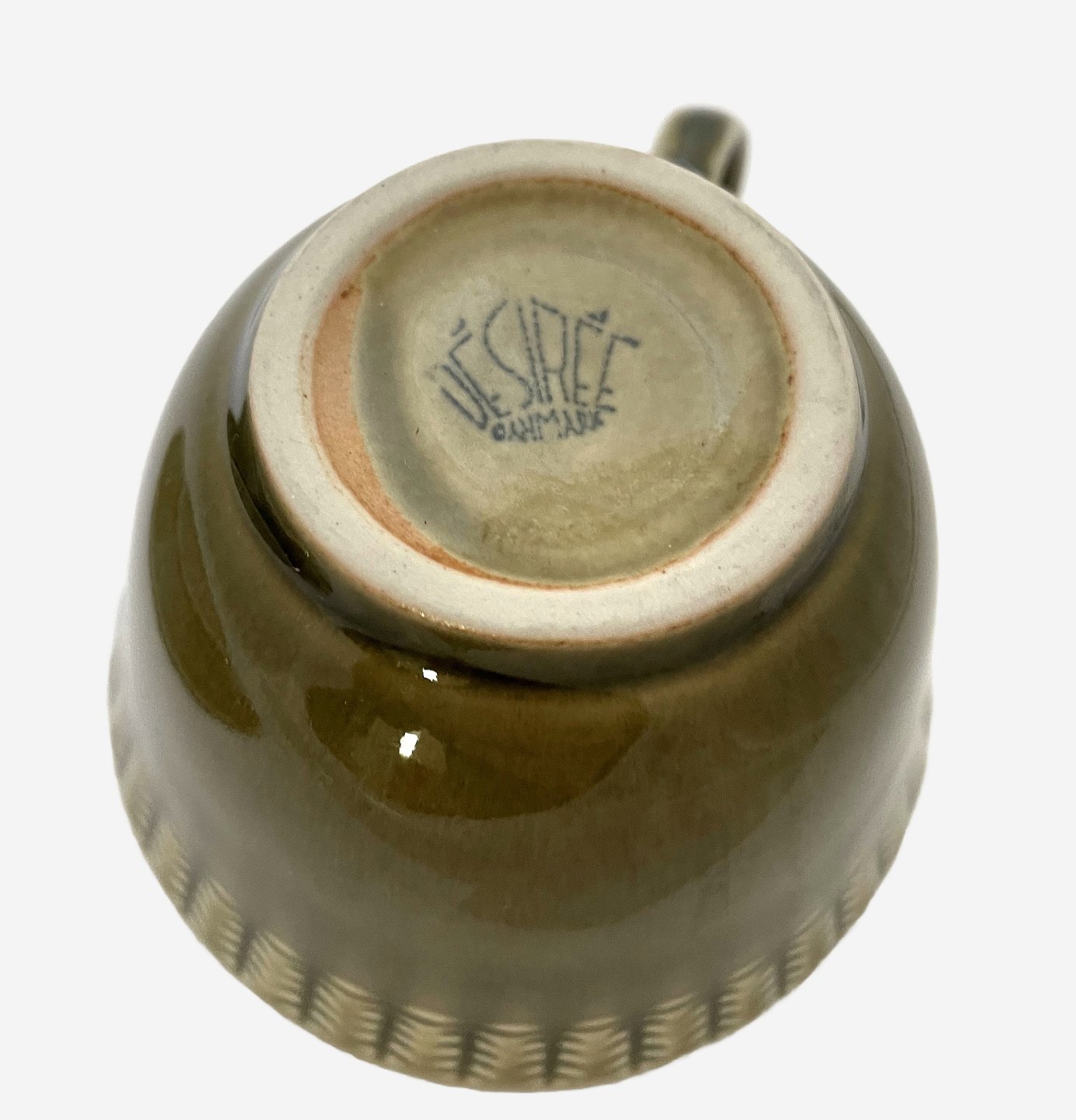 Desiree, Grøn glasseret kop som vi desværre ikke kender navnet på, men som er yderst sjælden. Højde 6 cm. Øverste diameter 9,5 cm. Underkop diameter 14,5 cm. Pris: 125 kr. stk. Lager: 6