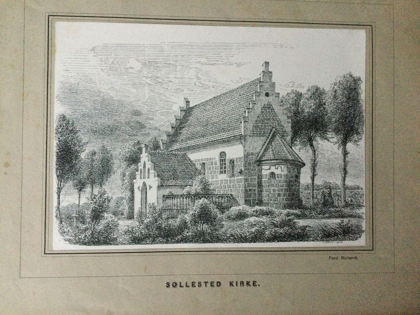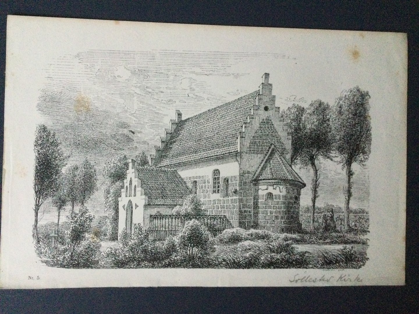 Litografi af Ferdinand Richardt - Søllested Kirke 1866.