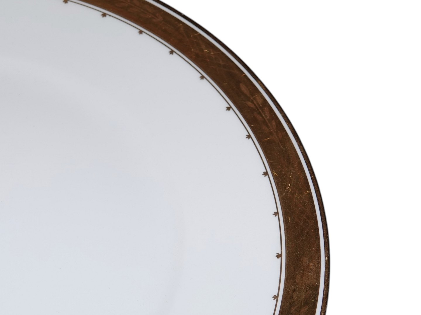 Royal Copenhagen Variation af Guldkurv, hvid middagstallerken med guldkant.