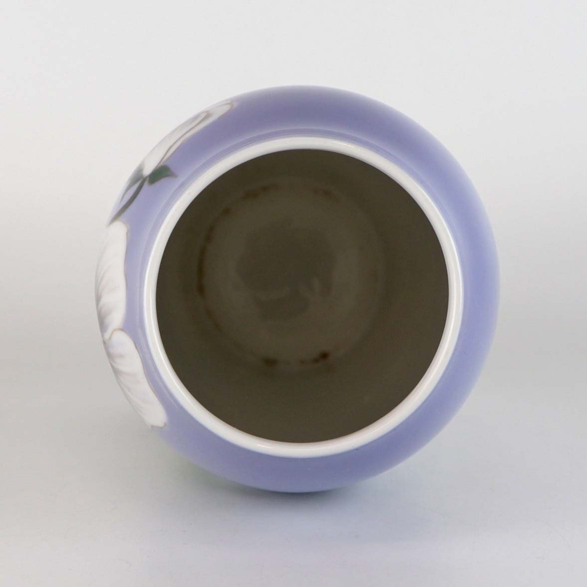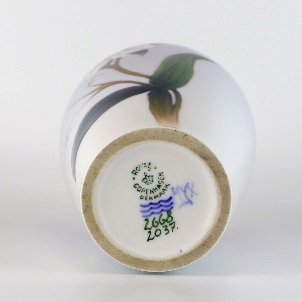 Vase i porcelæn med motiv af blomstrende hvid orkide på gradueret blå baggrund. Nr. 2668/2037