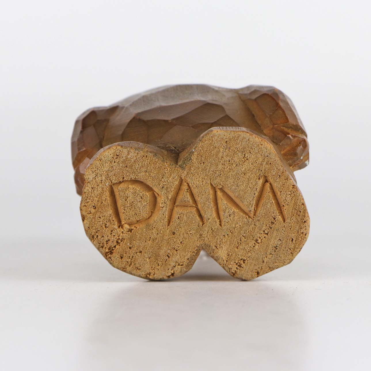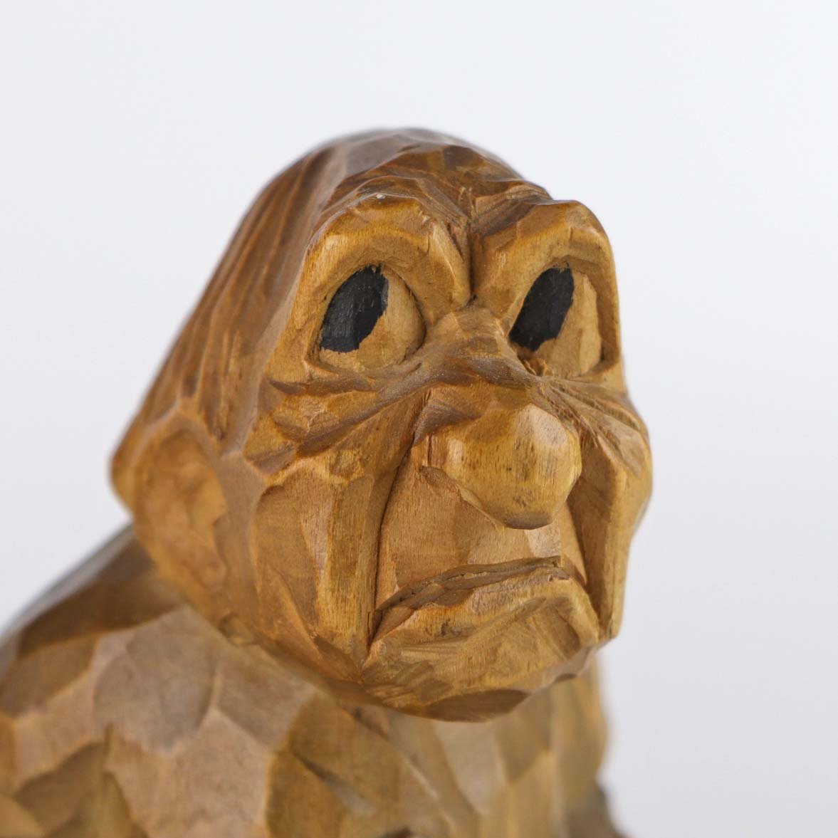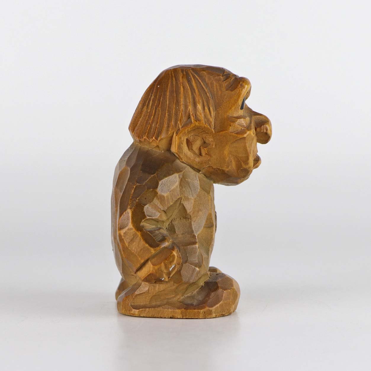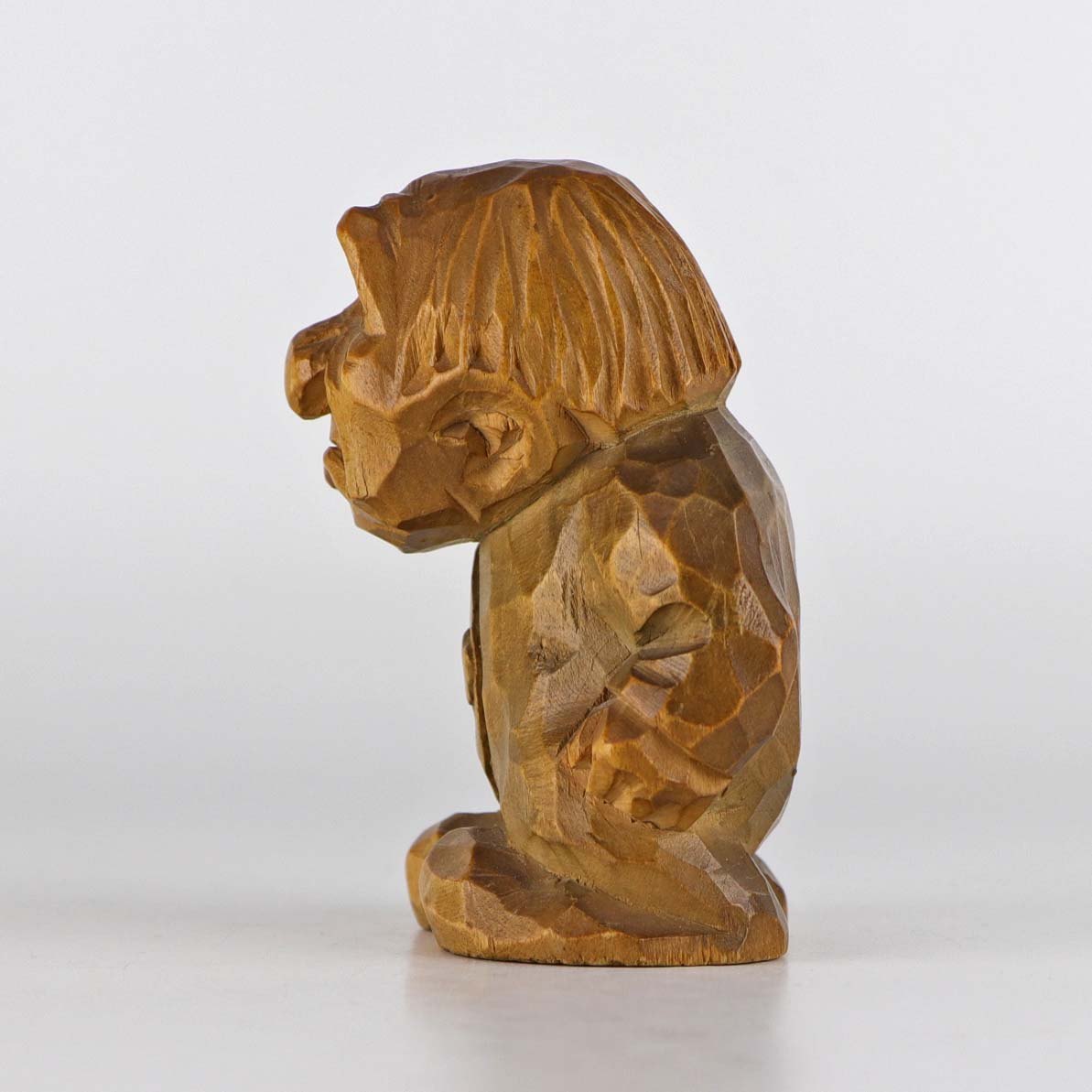 Håndsnittet figur i træ med motiv af ældre mand med stor næse og et gnavent ansigtsudtryk