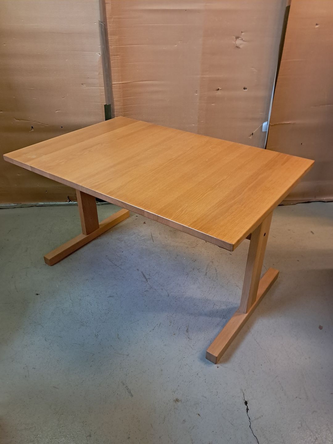Spisebord med 2 tillægsplader i massivt egetræ, fra 1980erne.