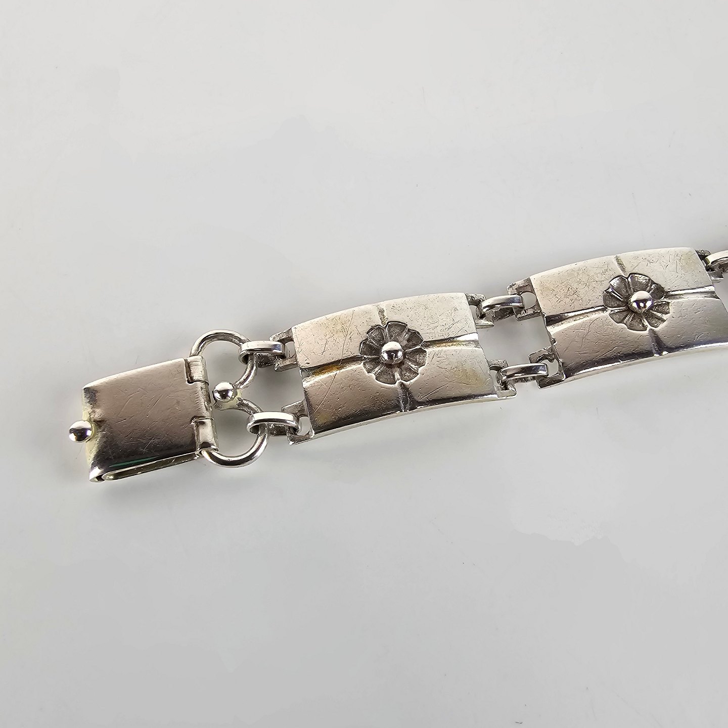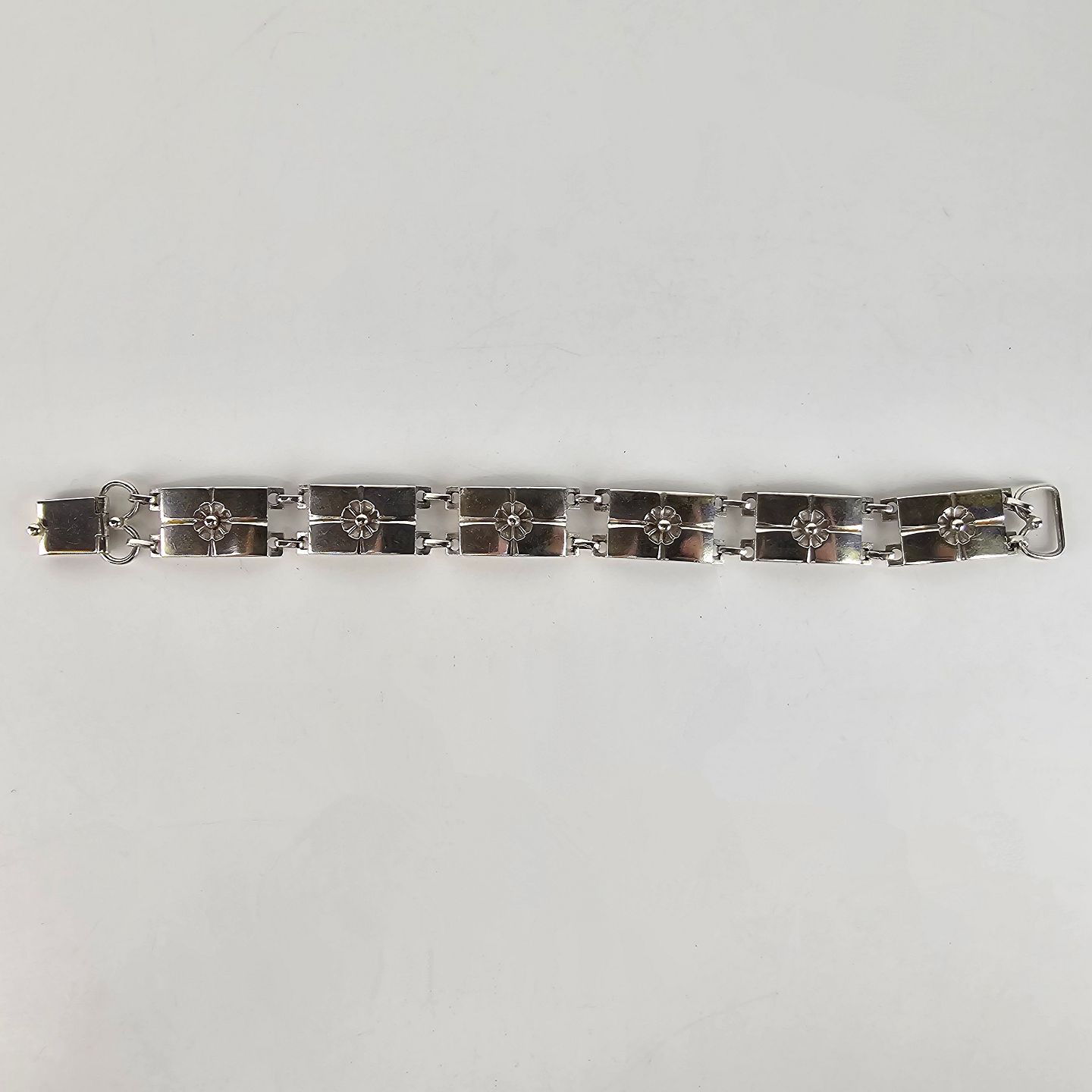 Art Deco armbånd fra ca 1930-40 i 830 s sølv, med motiv af firkanter med blomster i.