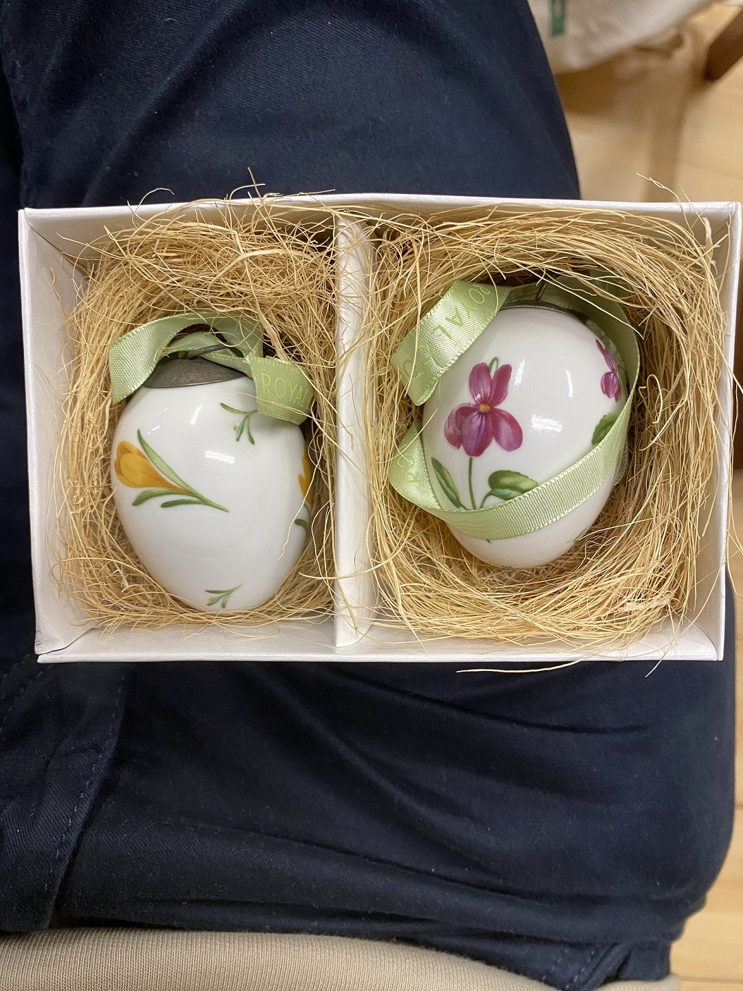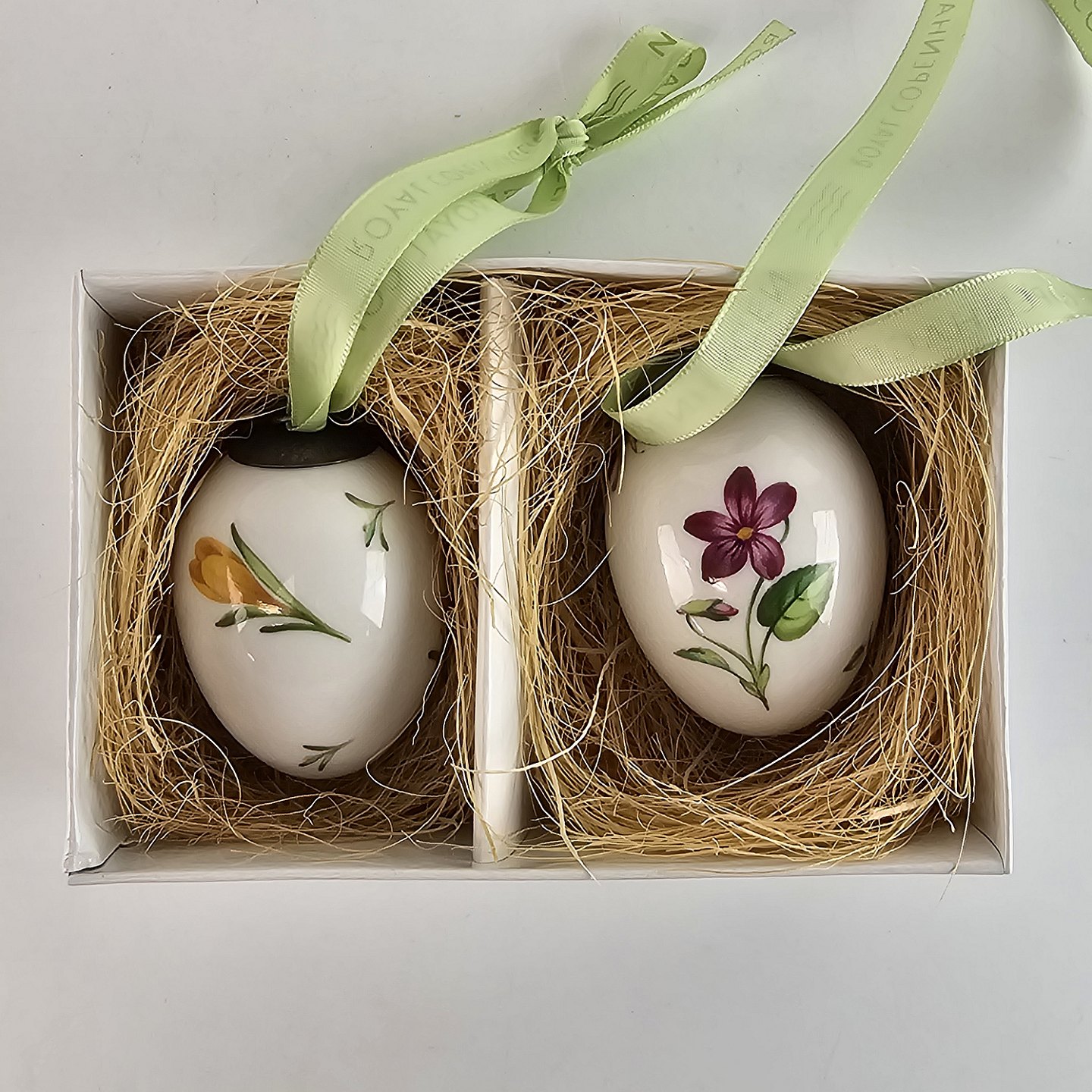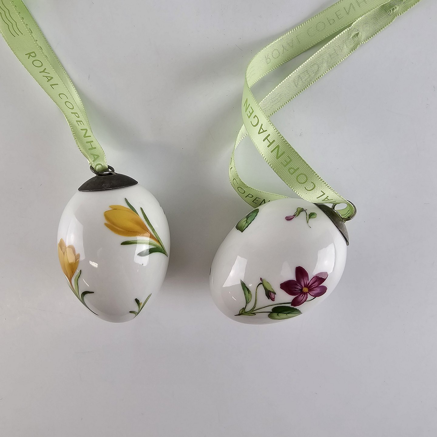 Påskeæggene fra Royal Copenhagen har motiver af udvalgte blomster og fugle i flotte farver