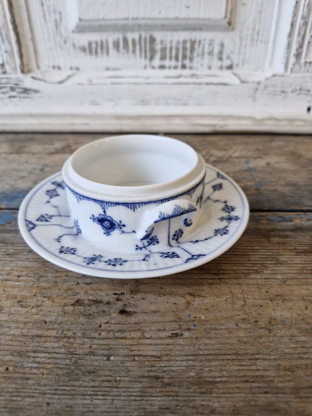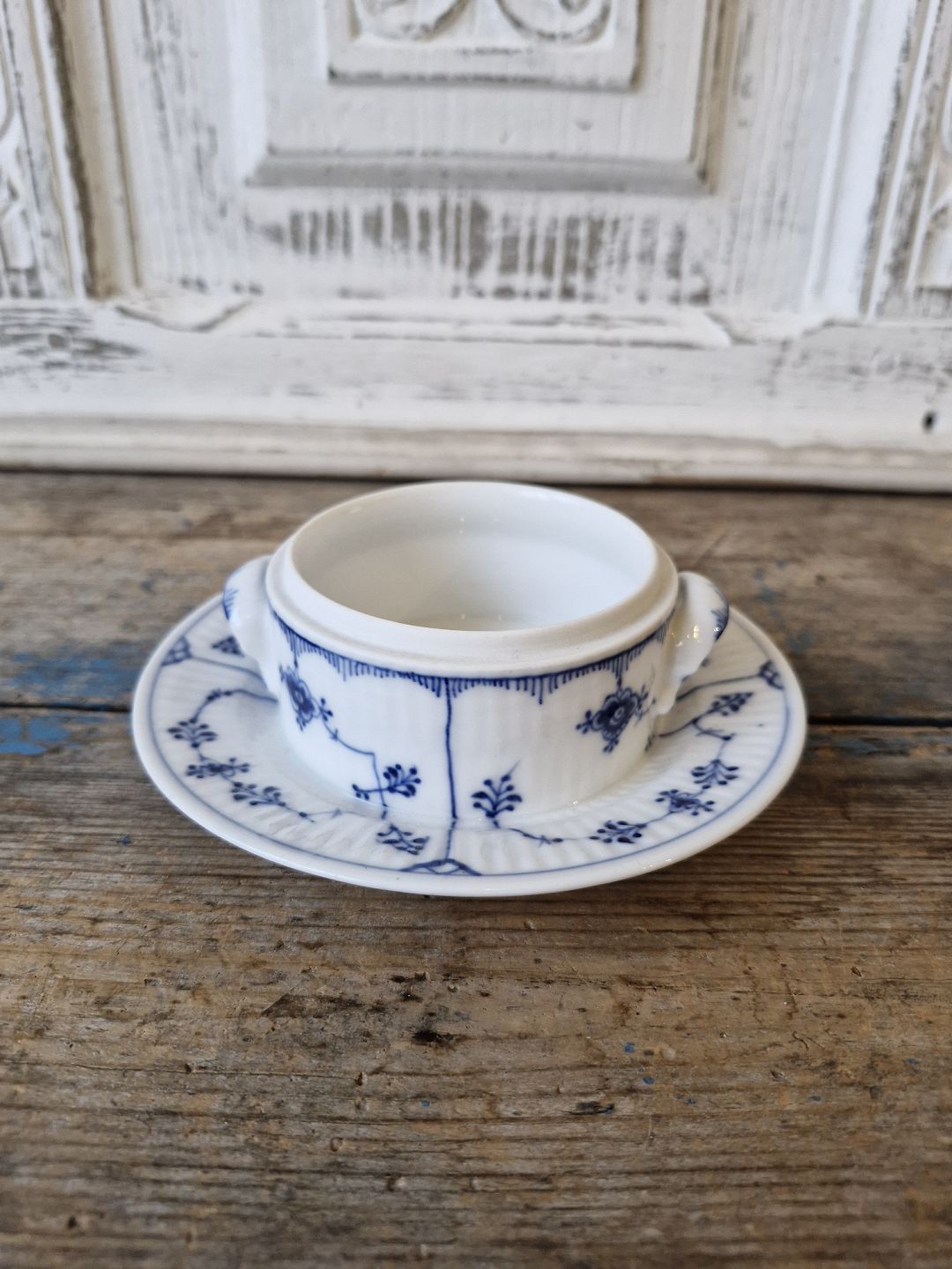 Royal Copenhagen Musselmalet riflet smørskål på fast underfad uden låg no. 399