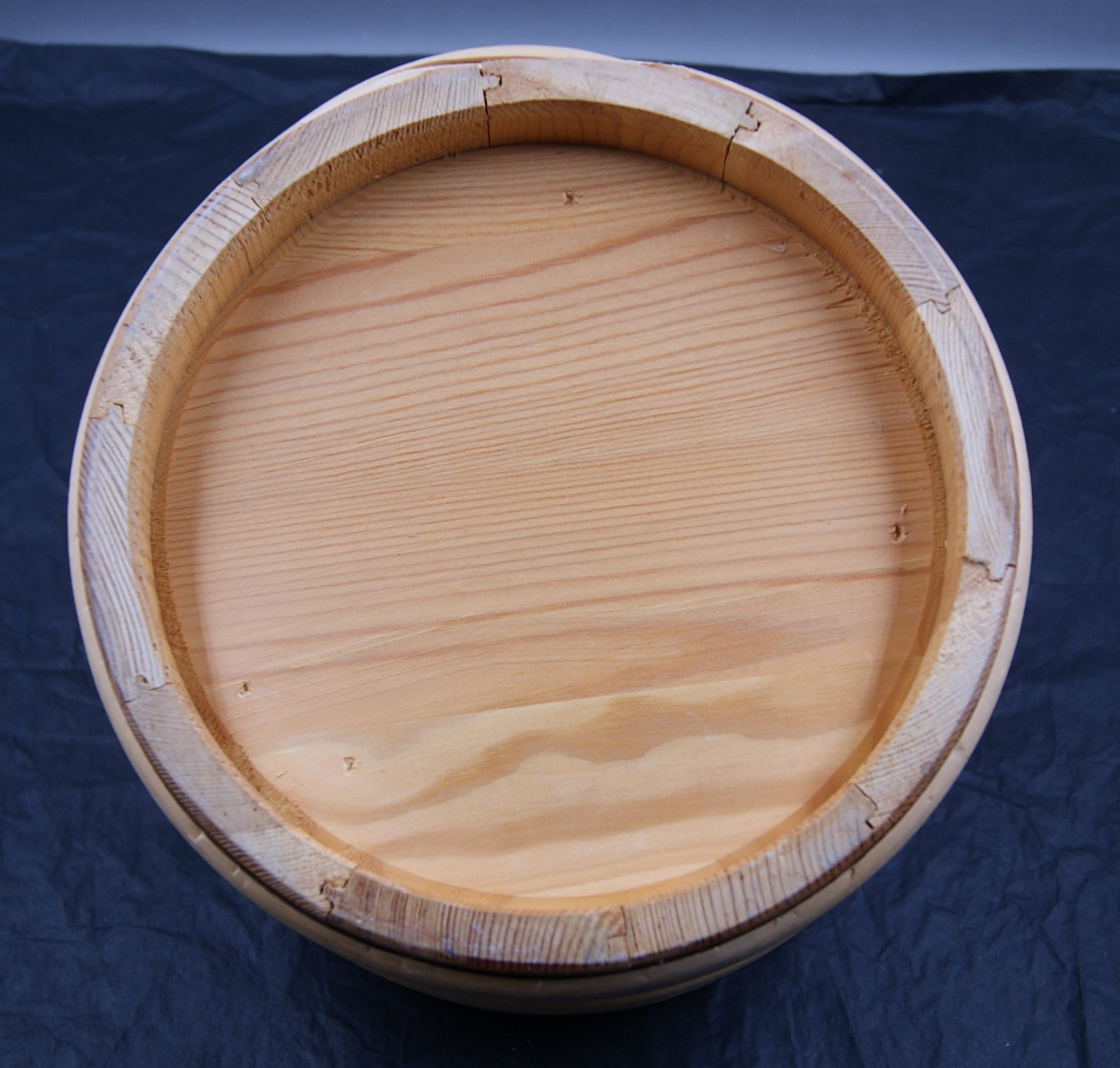 Rund tejne (madkasse) af træ, sandsynligvis fra Sverige.