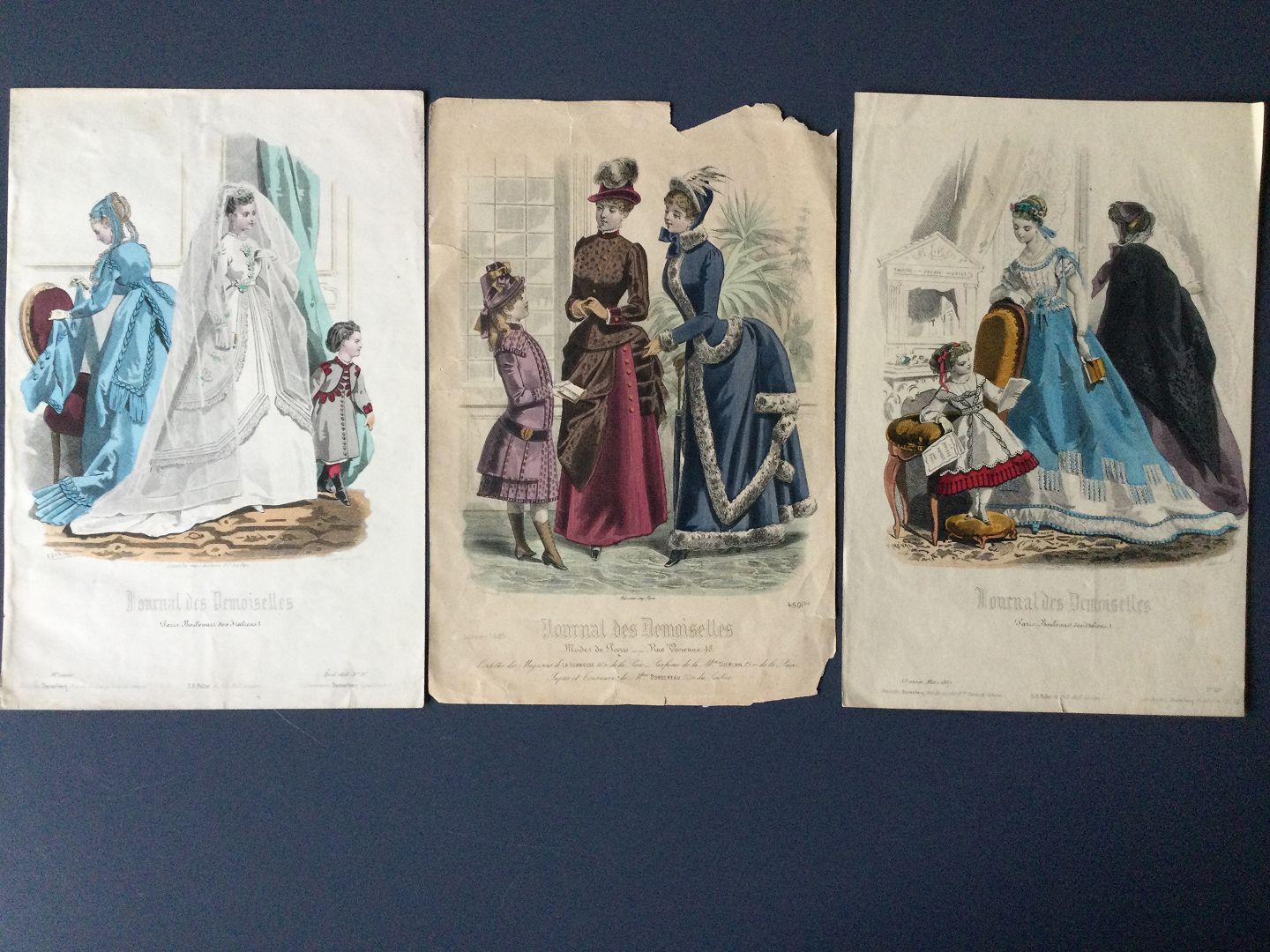 3 franske håndkolorerede raderinger - Fransk Mode 1867-85.