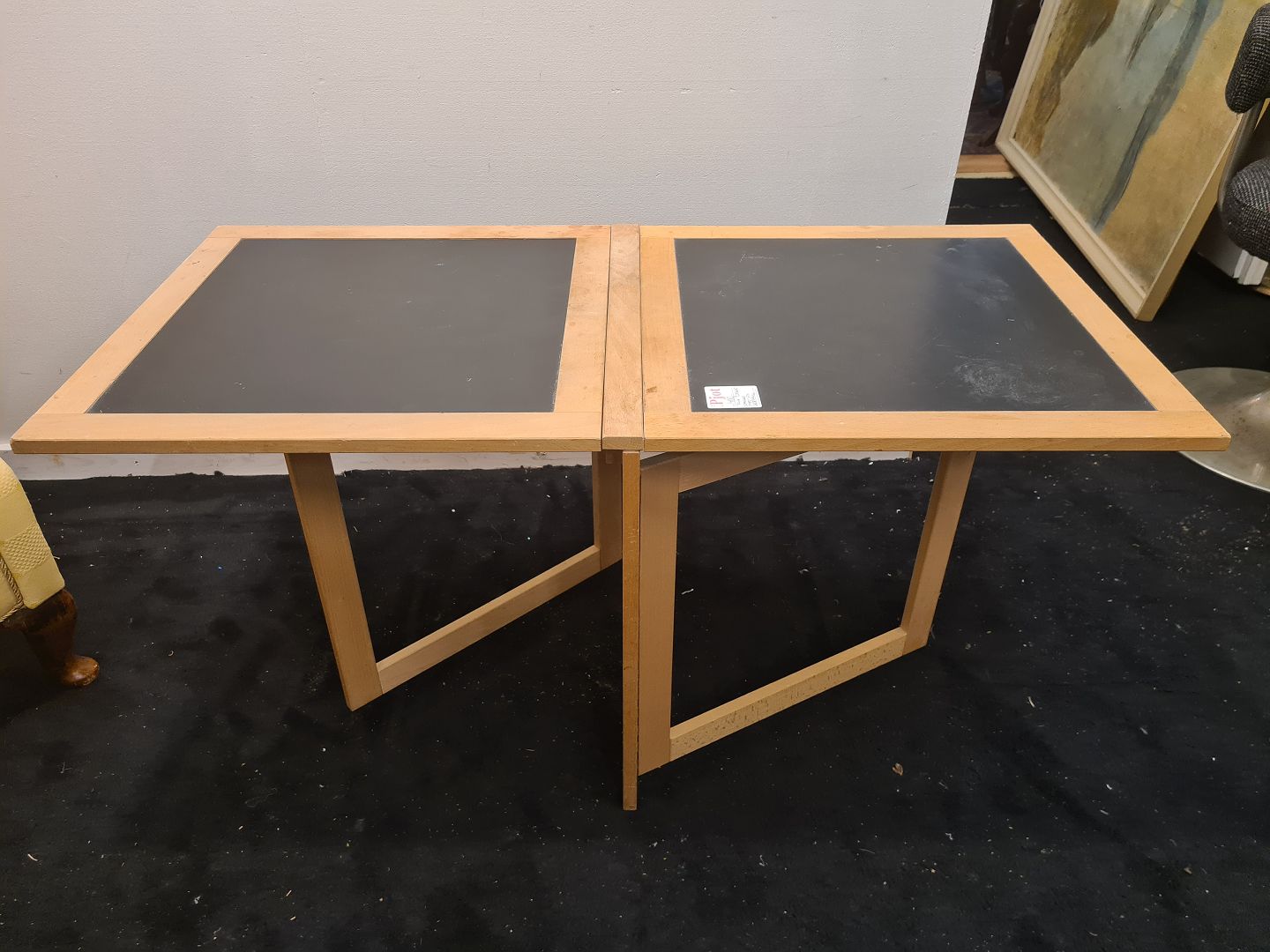 Arne Robert klap sofabord i bøg med plader i sort laminat.