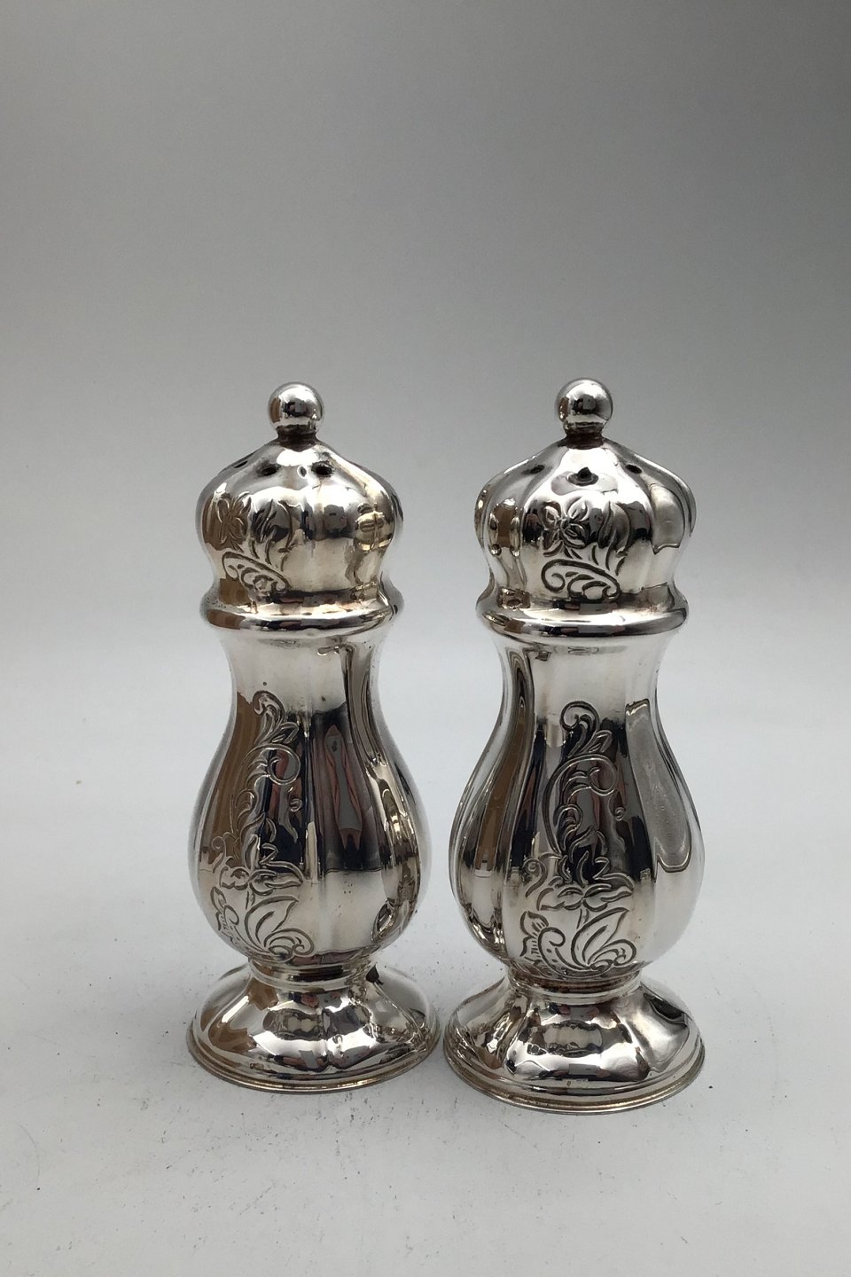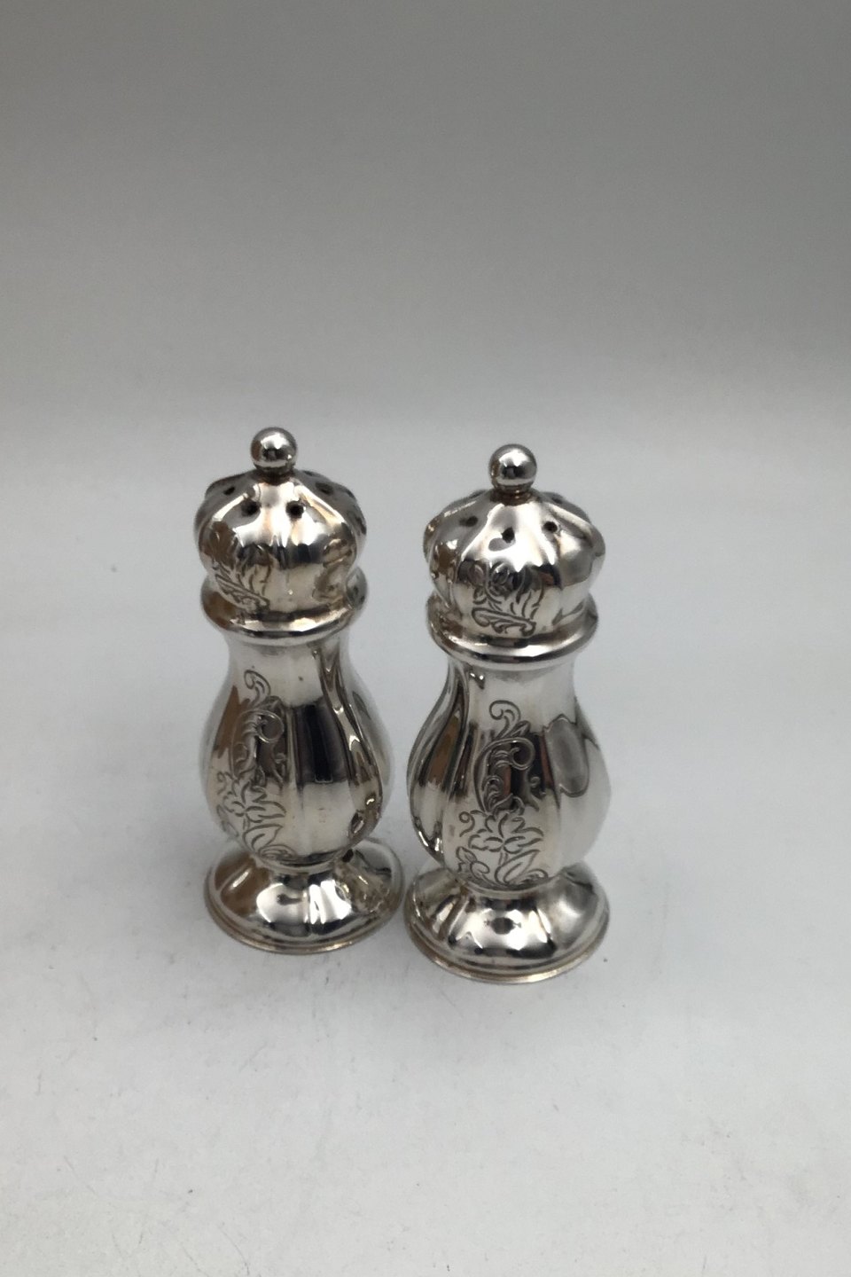 H Fischer Sølv Salt / Peber bøsser (Par)