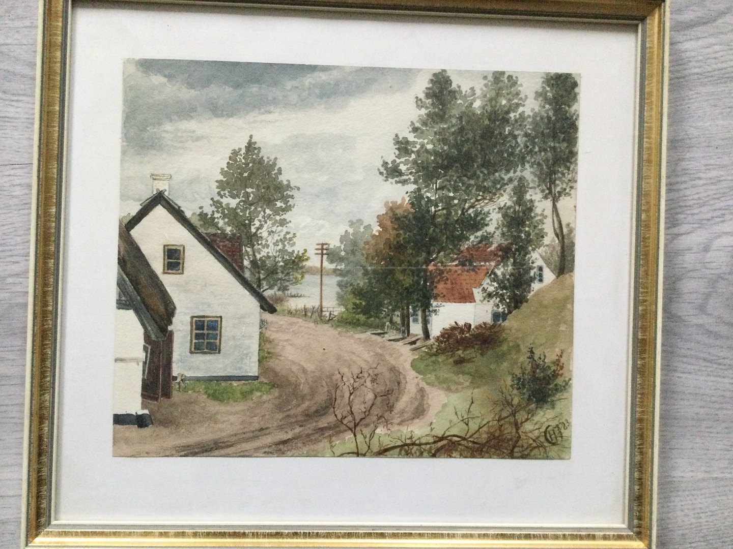 Akvarel af Catharine Heyerdahl - Vej gennem by 1883