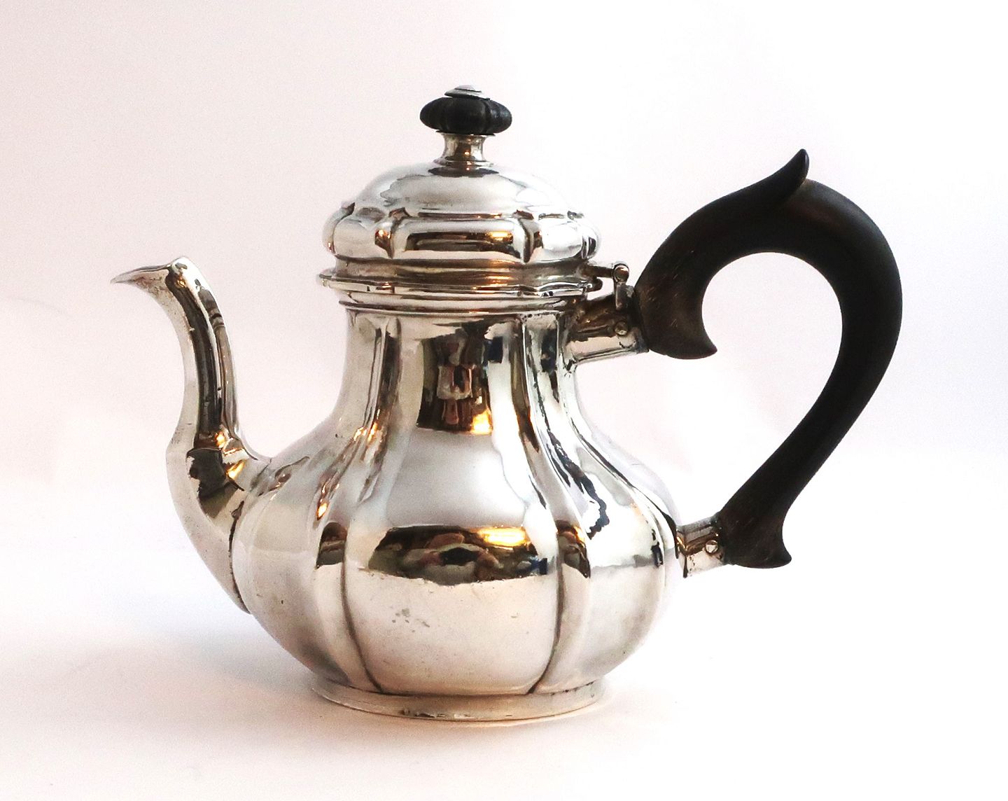 Niels Johnsen, København (1705-1734). Ligeknækket sølv tekande (830). Højde 14 cm. Produceret 1733. Har desuden København stempel fra 1737.
