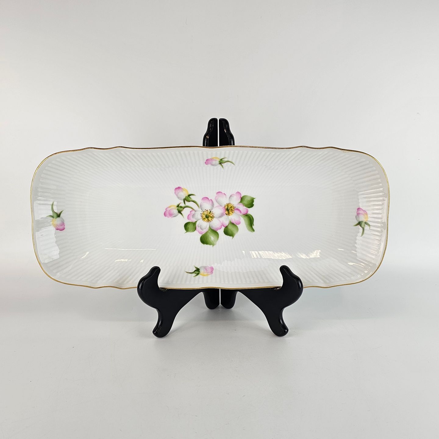Rektangulært fad i porcelæn fra stellet æbleblomst.