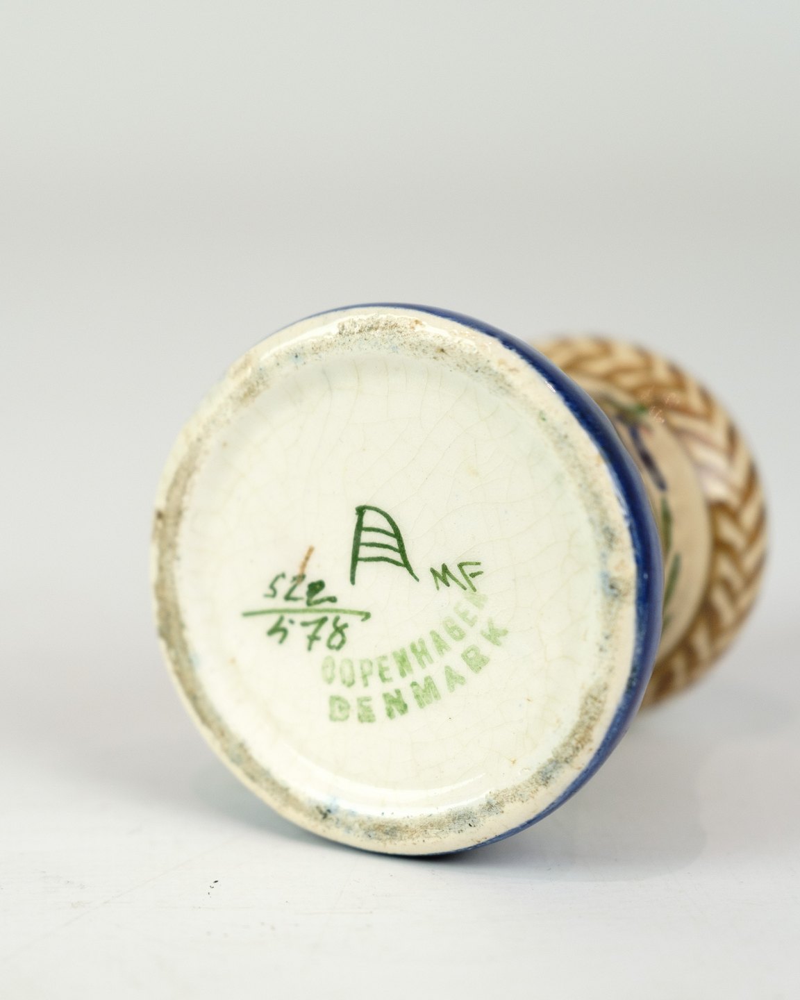 Denne lysestage, model 522/578, er fremstillet i fajance og smukt håndmalet med fine detaljer. Dens klassiske design og kunstneriske udførelse gør den til en dekorativ og funktionel genstand, der skaber en hyggelig atmosfære i hjemmet.
