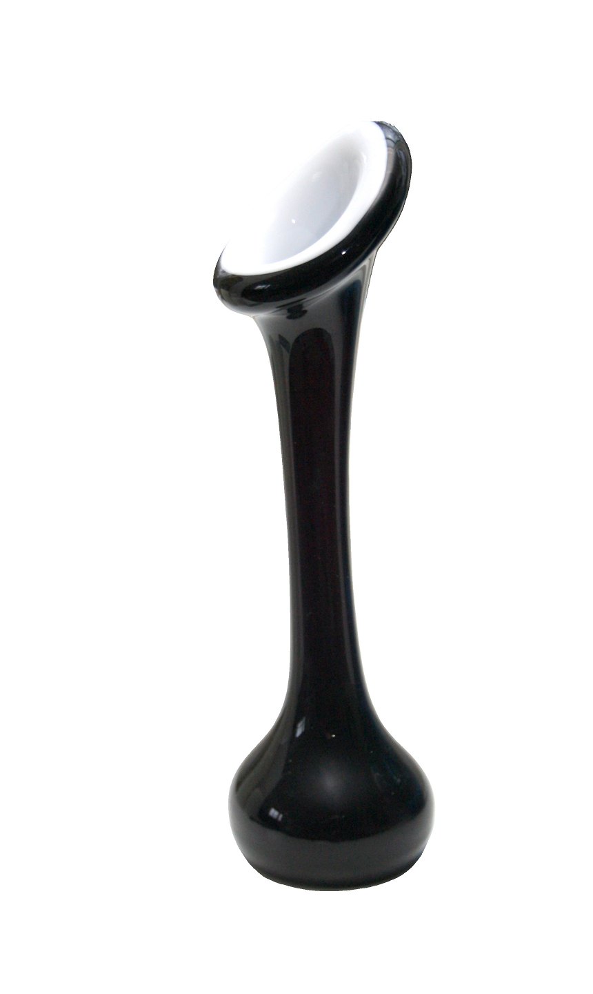 Knoglevase i sort udvendig med hvid opaline indvendig. Højde 20,5 cm. Ikke gennemsigtig. Flot stand. Pris: 300 kr. stk. Lager: 1