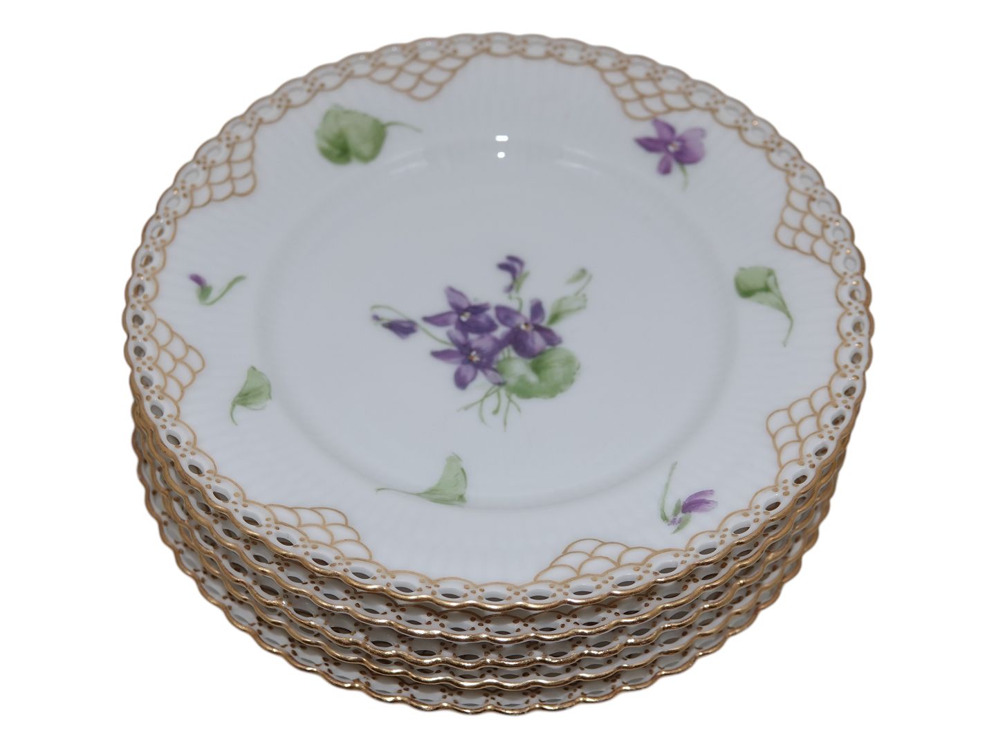 Royal Copenhagen Blå Violer Helblonde med guldkant, kagetallerken.