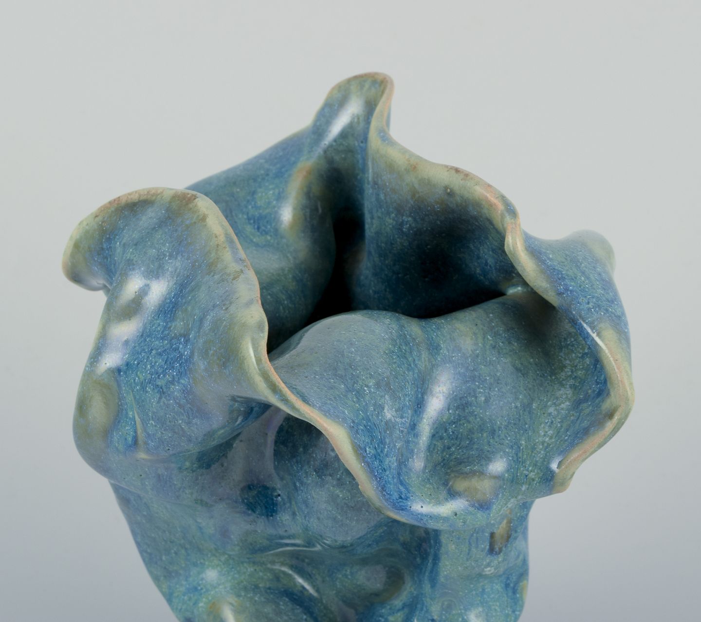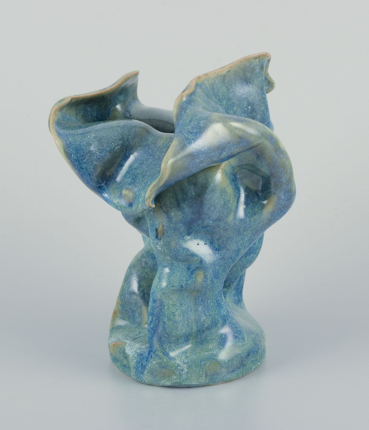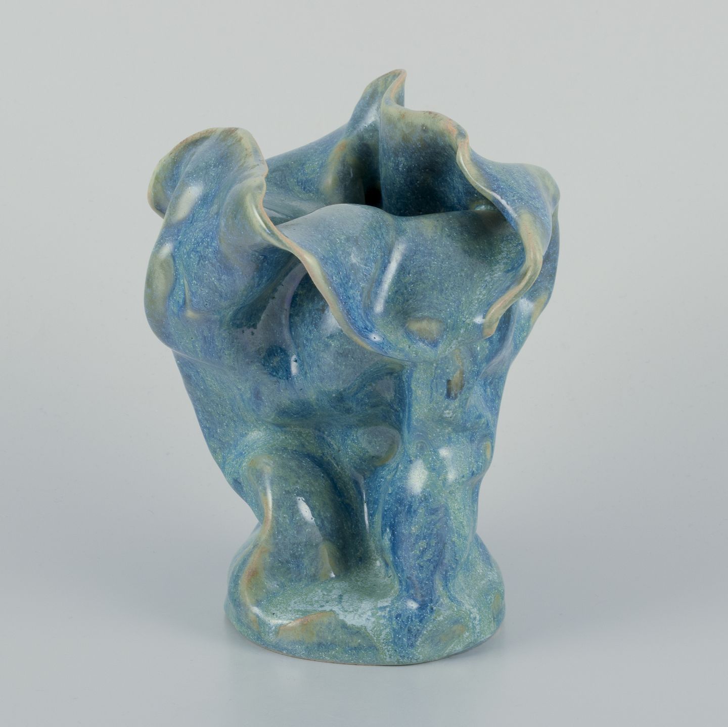 Unika keramikvase. Organisk form. Håndlavet, håndglaseret. Glasur i blågrønne toner.