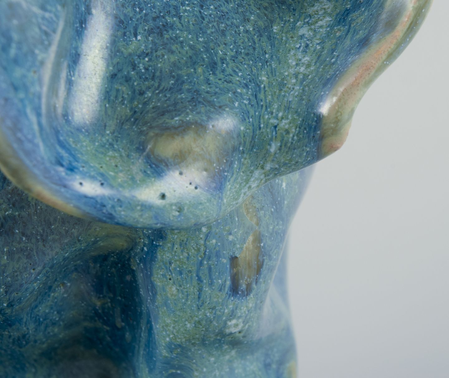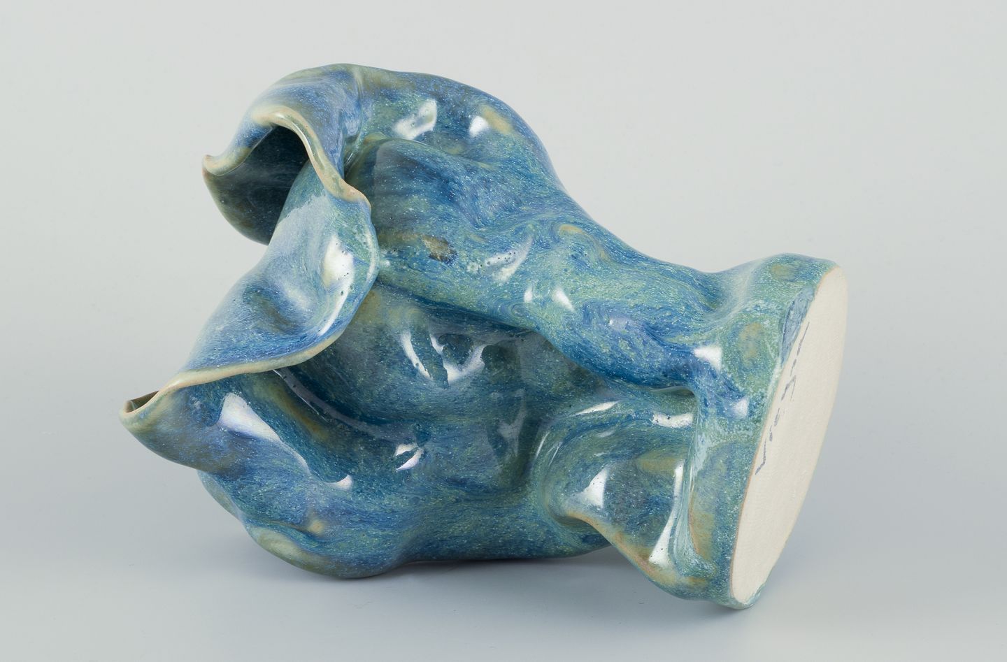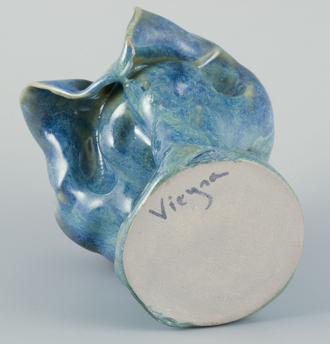 Unika keramikvase. Organisk form. Håndlavet, håndglaseret. Glasur i blågrønne toner.