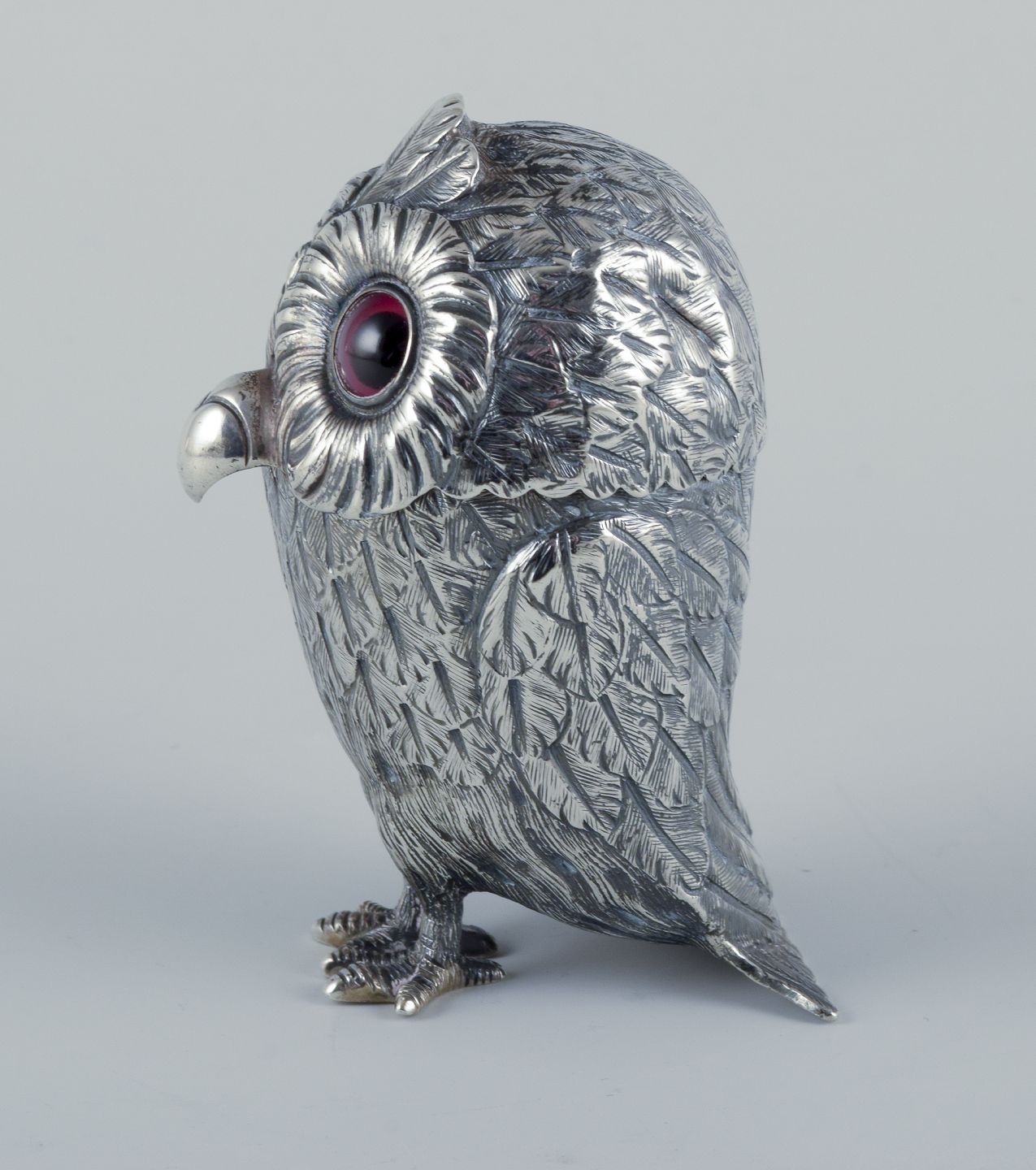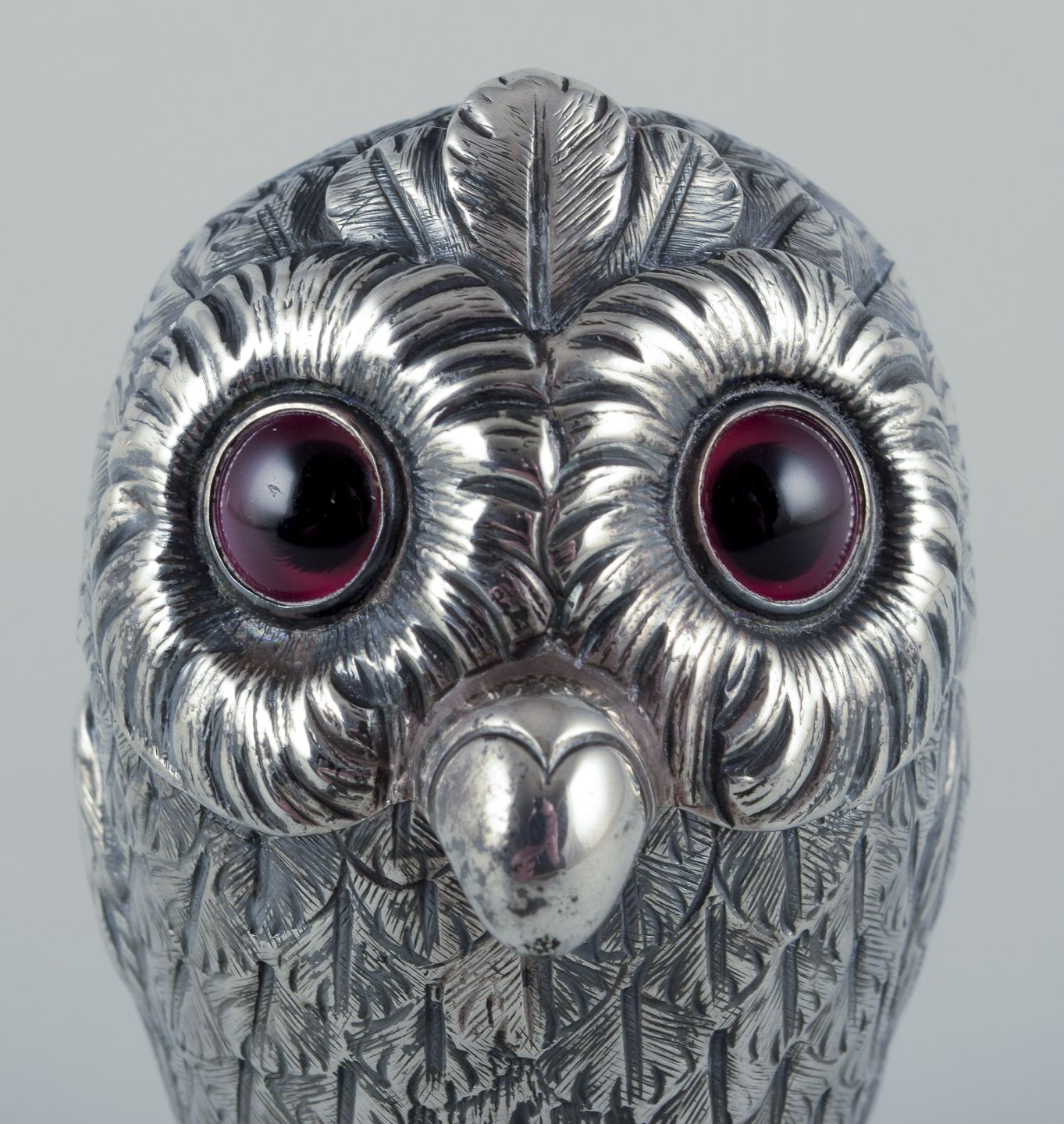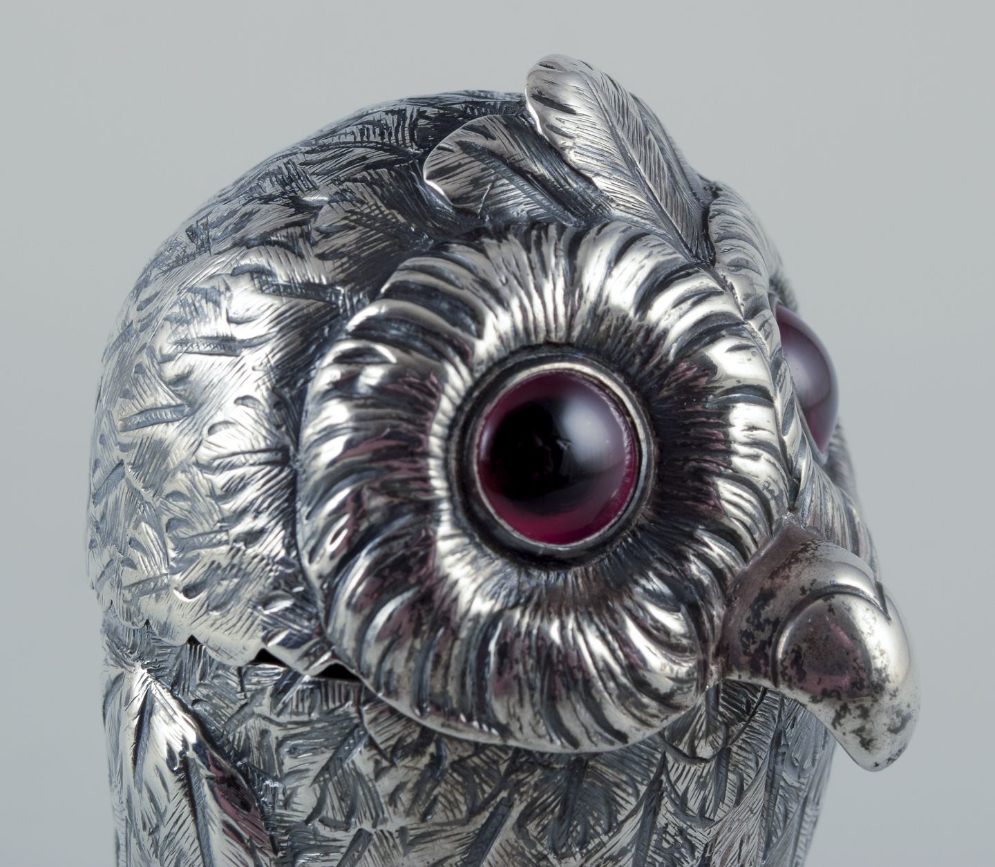Edward Charles Brown Sjælden sennepskrukke udformet som ugle med isatte røde glasøjne.
