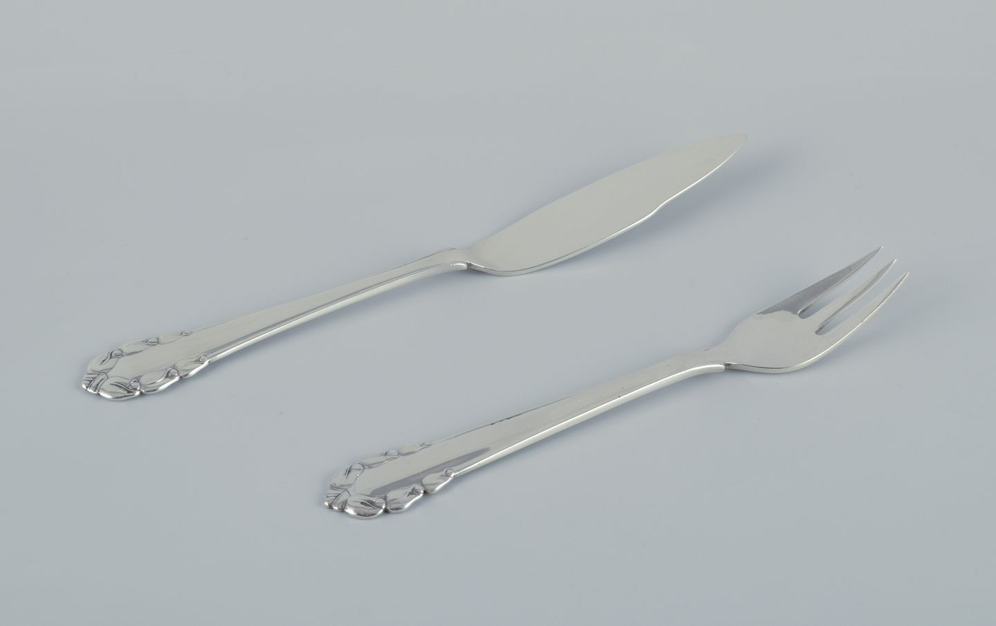 Georg Jensen, komplet tolvpersoners fiskebestik "Liljekonval" i sterlingsølv.