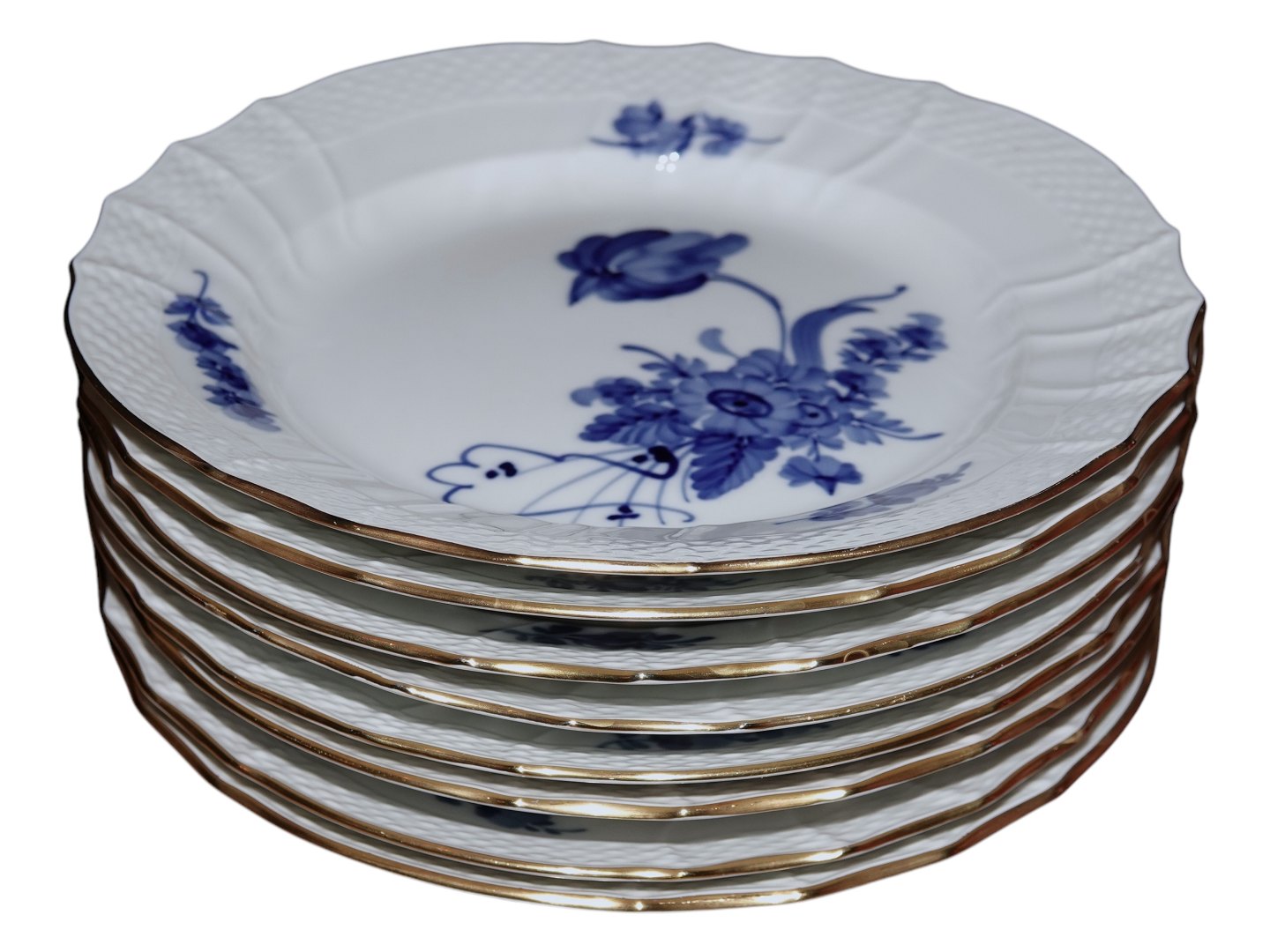 Royal Copenhagen Blå Blomst Svejfet med guldkant, frokosttallerken.