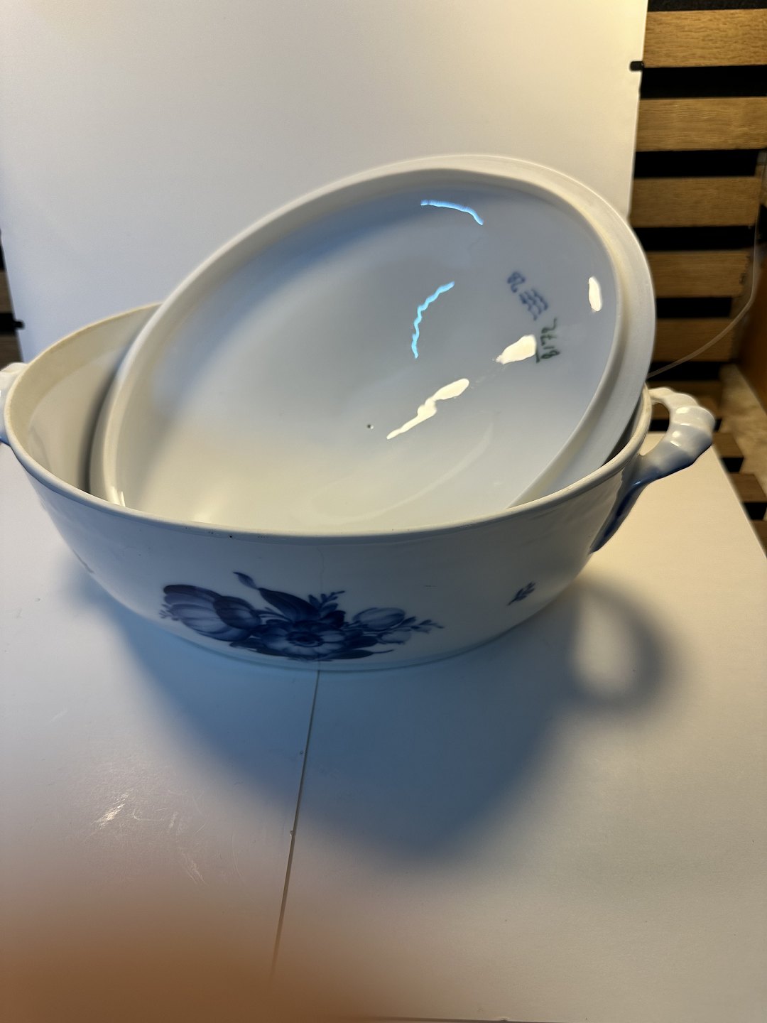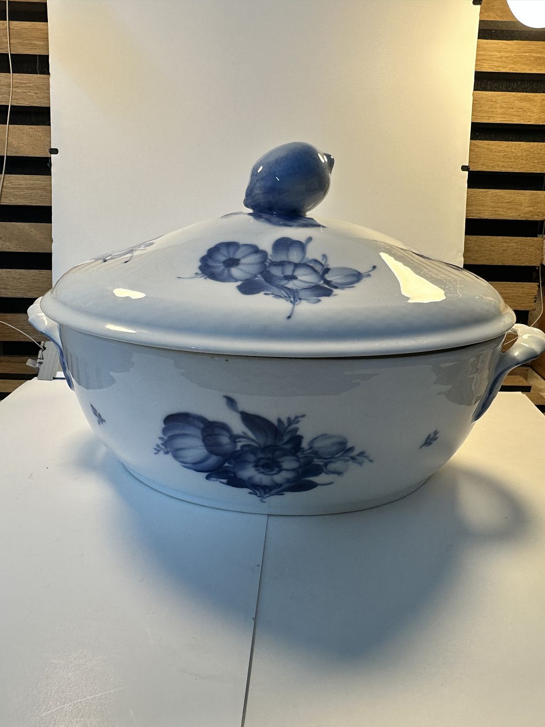 Royal Copenhagen, blå blomst, oval suppeterrin, lågfad