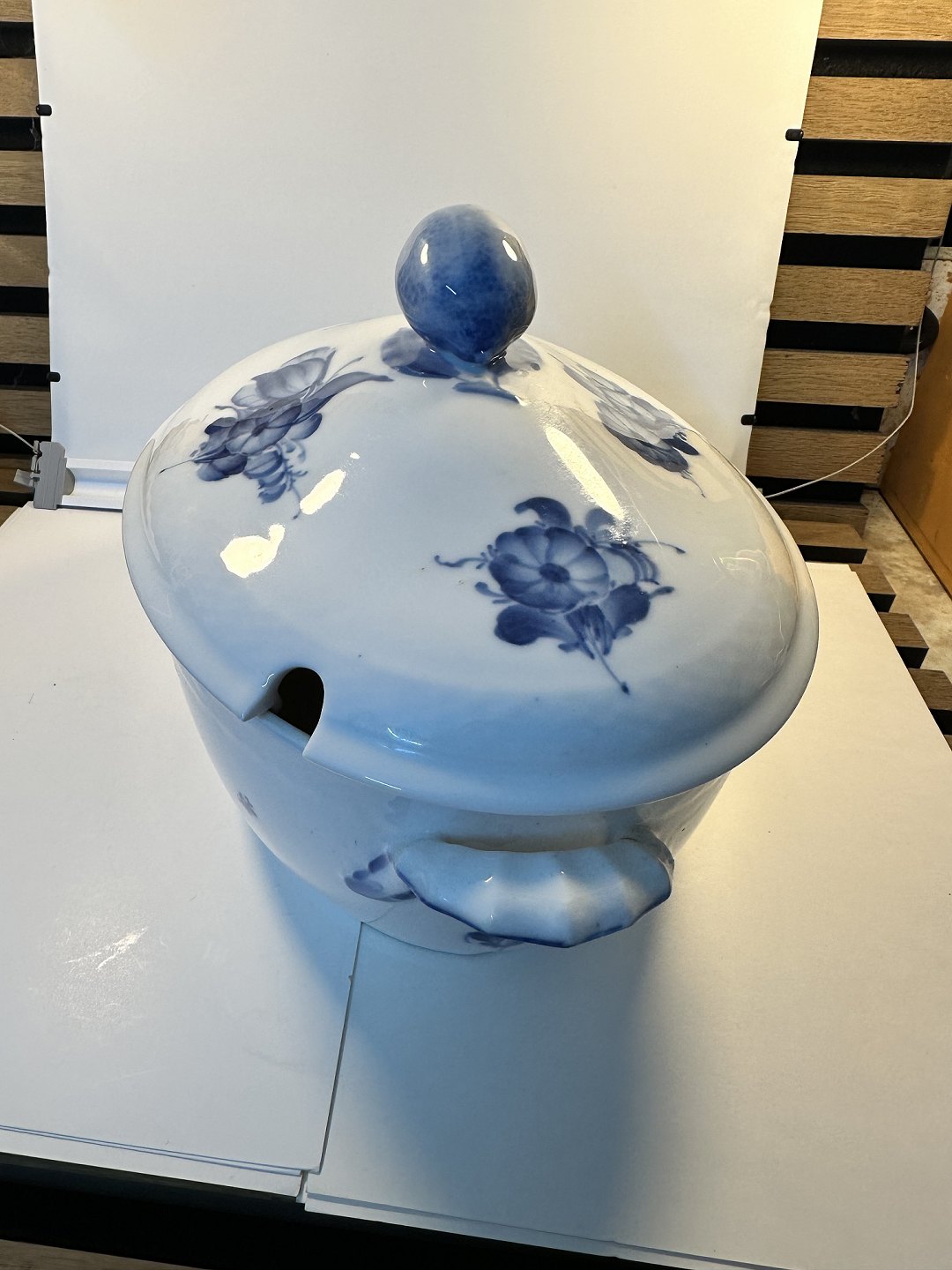 Copenhagen, blå blomst, suppeterrin i fletter