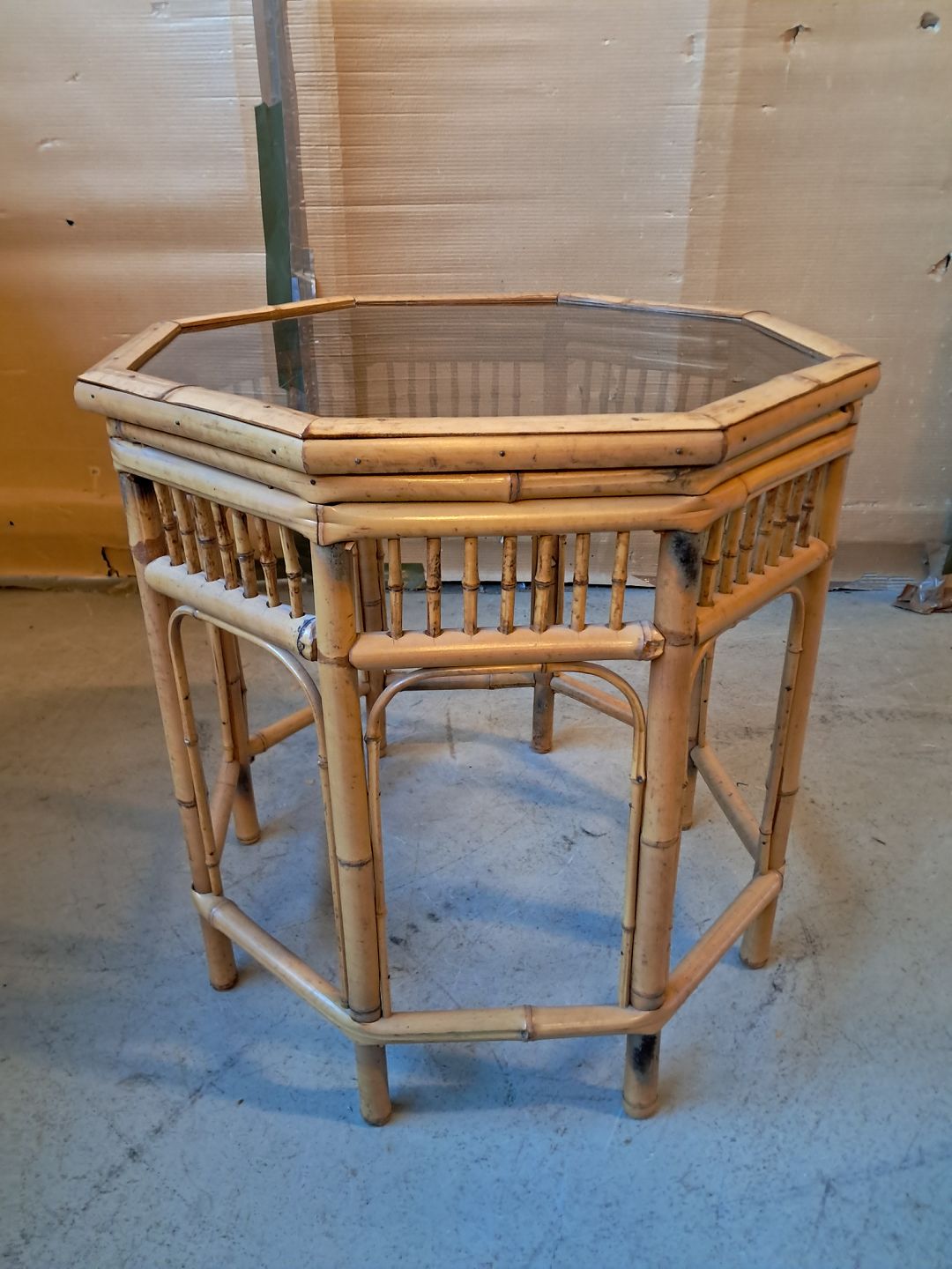 Lampebord i bambus med glasplade, fra 1980erne.