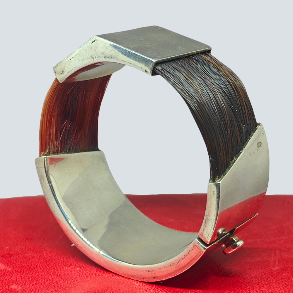 Anette Kræn; Large silver bracelet, partially gold-plated, with horsehair. The bracelet can be opened. Inner diameter approx. 5.7 cm. W. 2.7 cm.