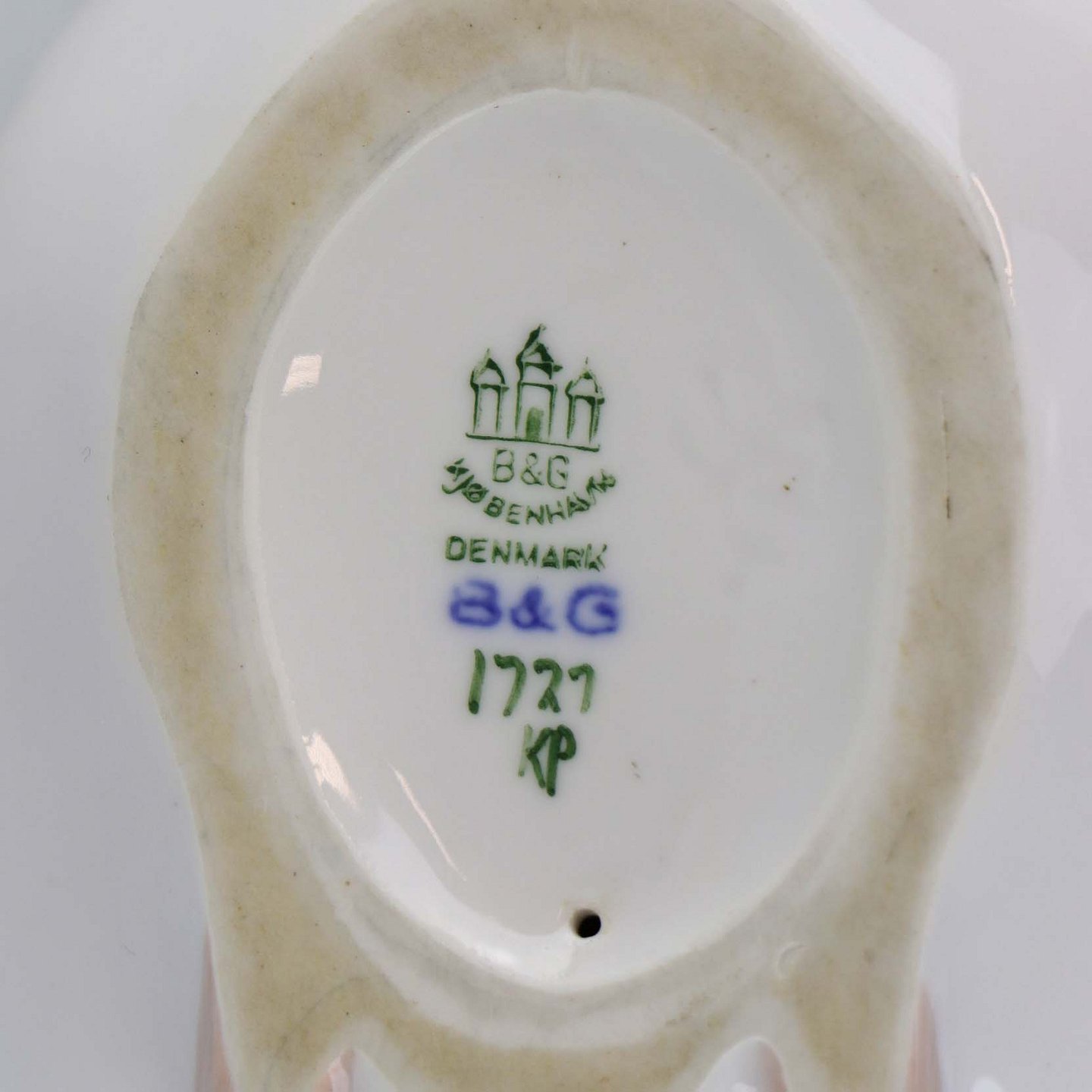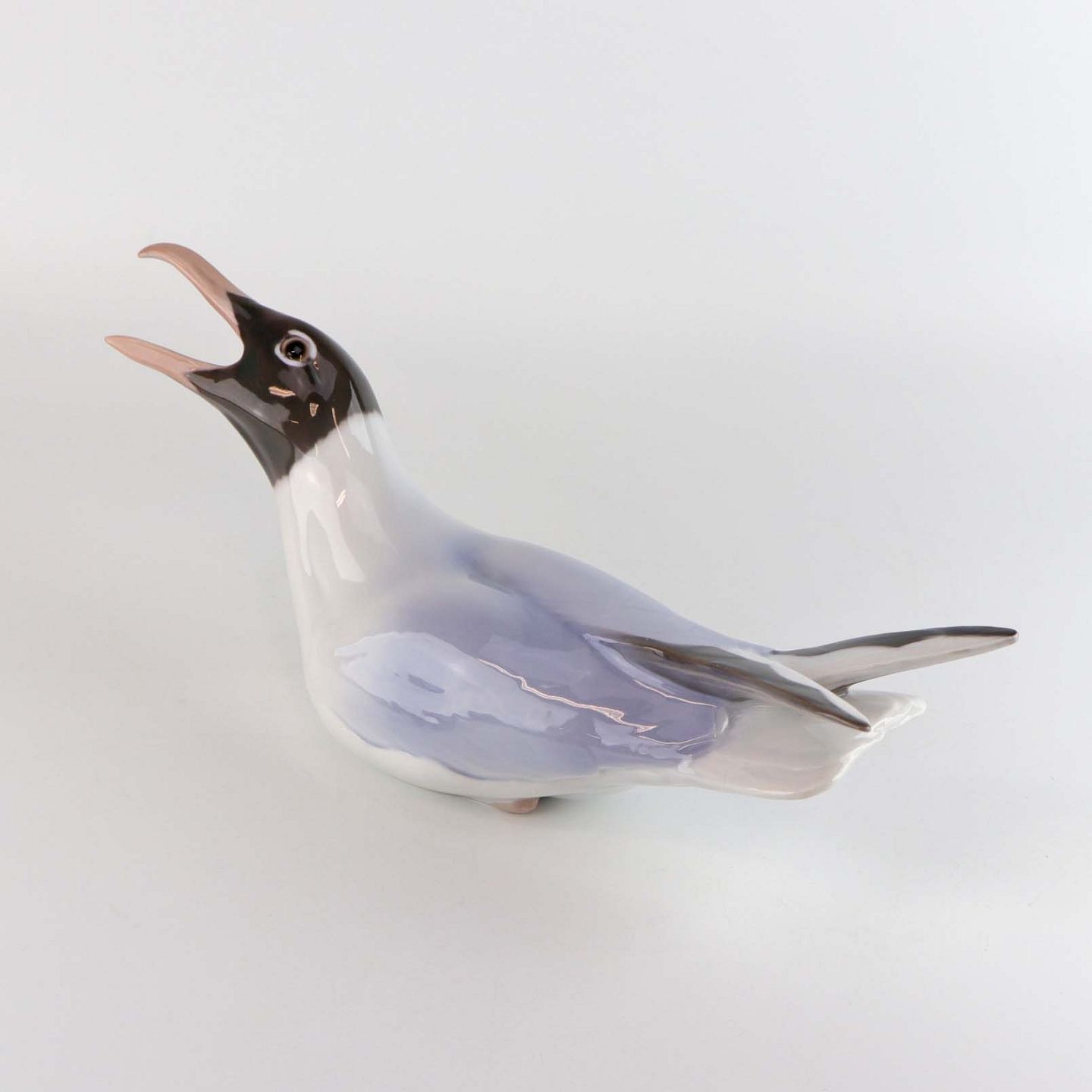 Figur i porcelæn med motiv hættemåge med åbent næb. Nr. 1727