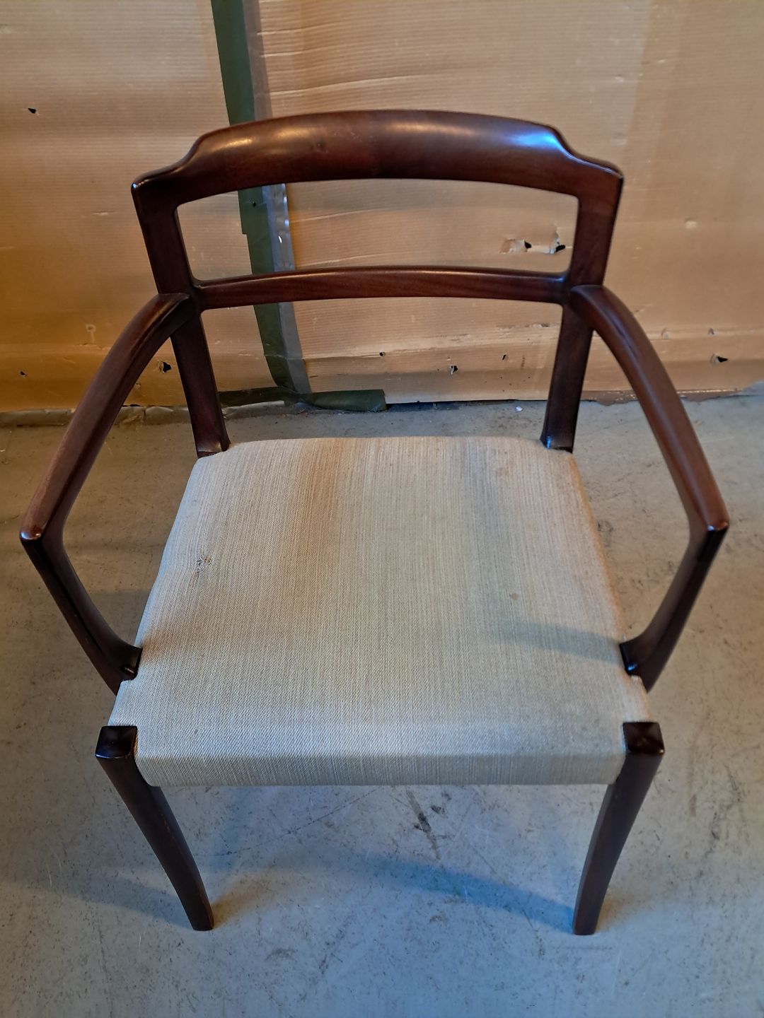 Aermstol i massivt mahogni, fra 1980erne.