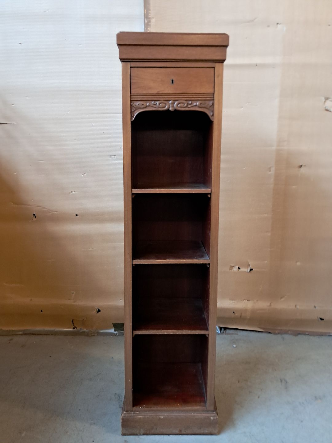 Lille reol i fineret mahogni, fra 1920erne.