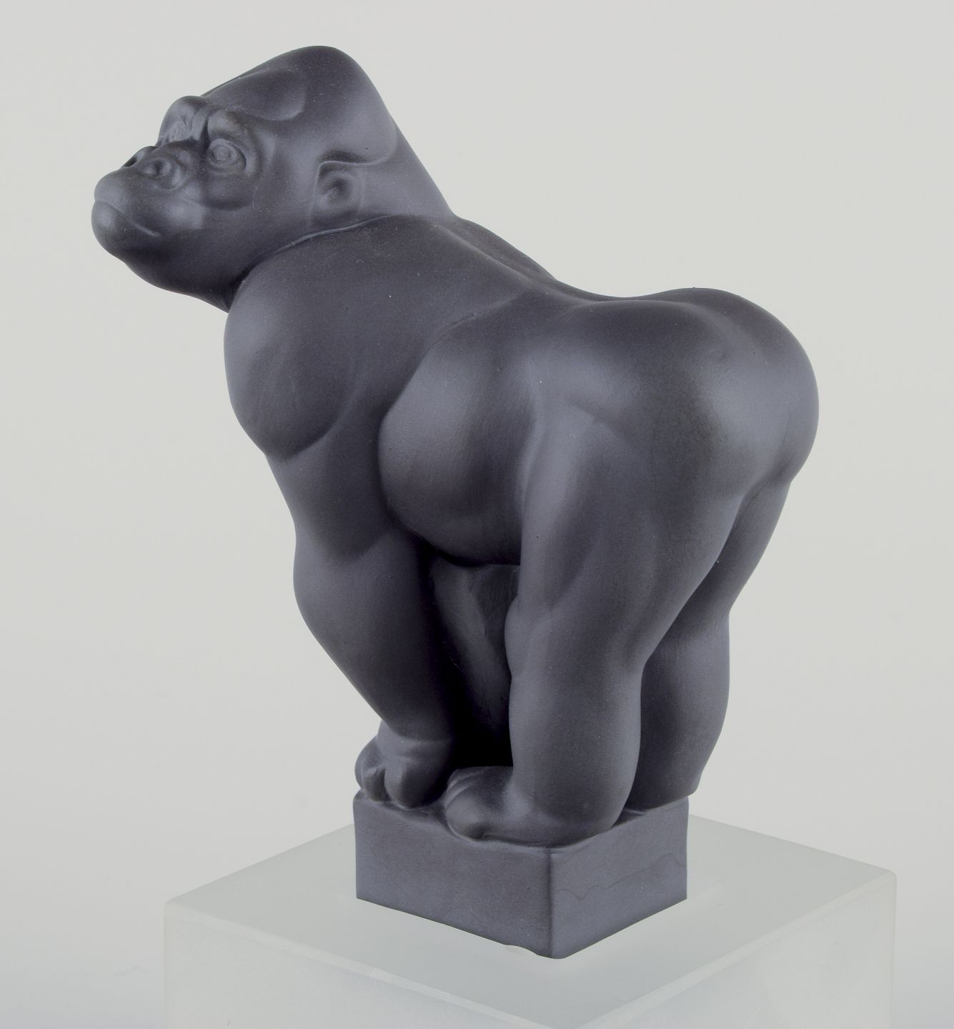 Pia Langelund for Royal Copenhagen. Figur af gorilla i bisquit.