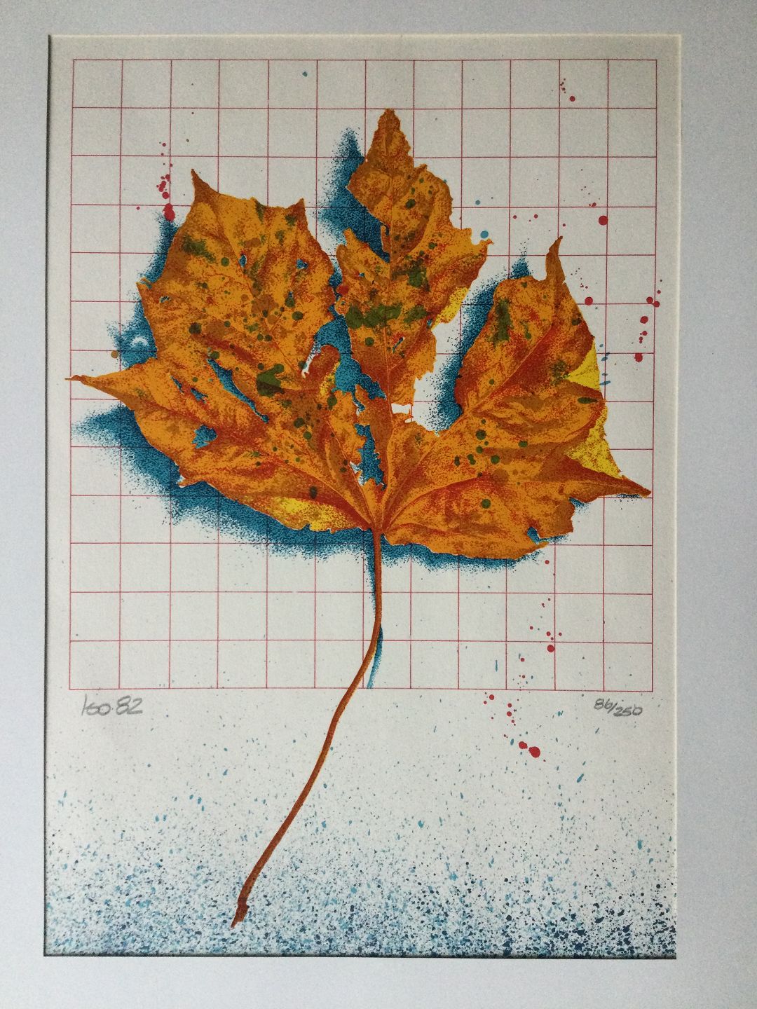 Text available in Danish: Litografi 1982 - Komposition med blad.